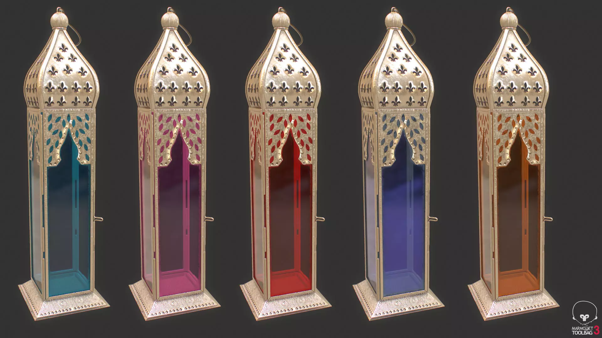 Moroccan artisanal lamp. Can be used in all sort of architectural visualization projects, especially from traditional looking ones to more modern ones. Ryads, castles, courts, bedrooms... you name it, it's up to your imagination and taste. Fits great in colorful and vibrant architecture.