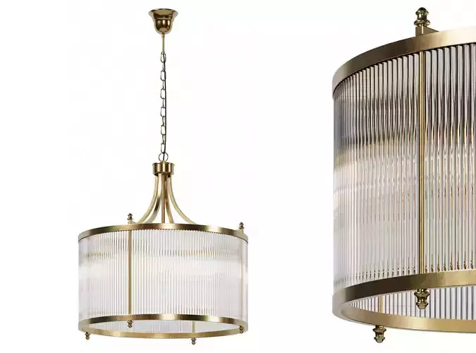 William's narrow chandelier will be a harmonious addition to an elegant bedroom or living room. The model has an elongated silhouette, which is supported in detail: a long suspension and a row of narrow rods as a lampshade. Transparent glass refracts and reflects light, filling the space with bright highlights and radiance.