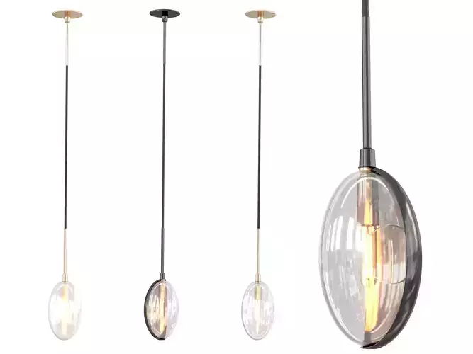 Oona is an artisan-made pendant featuring a brass-dipped “eyelid” which rotates around a blown glass form. This orbit reveals the polished finish of the lid’s interior which directs the lamp’s glow much like the ever-changing dark light of our moon. As it is set and reset, it transforms both itself and the space around it.