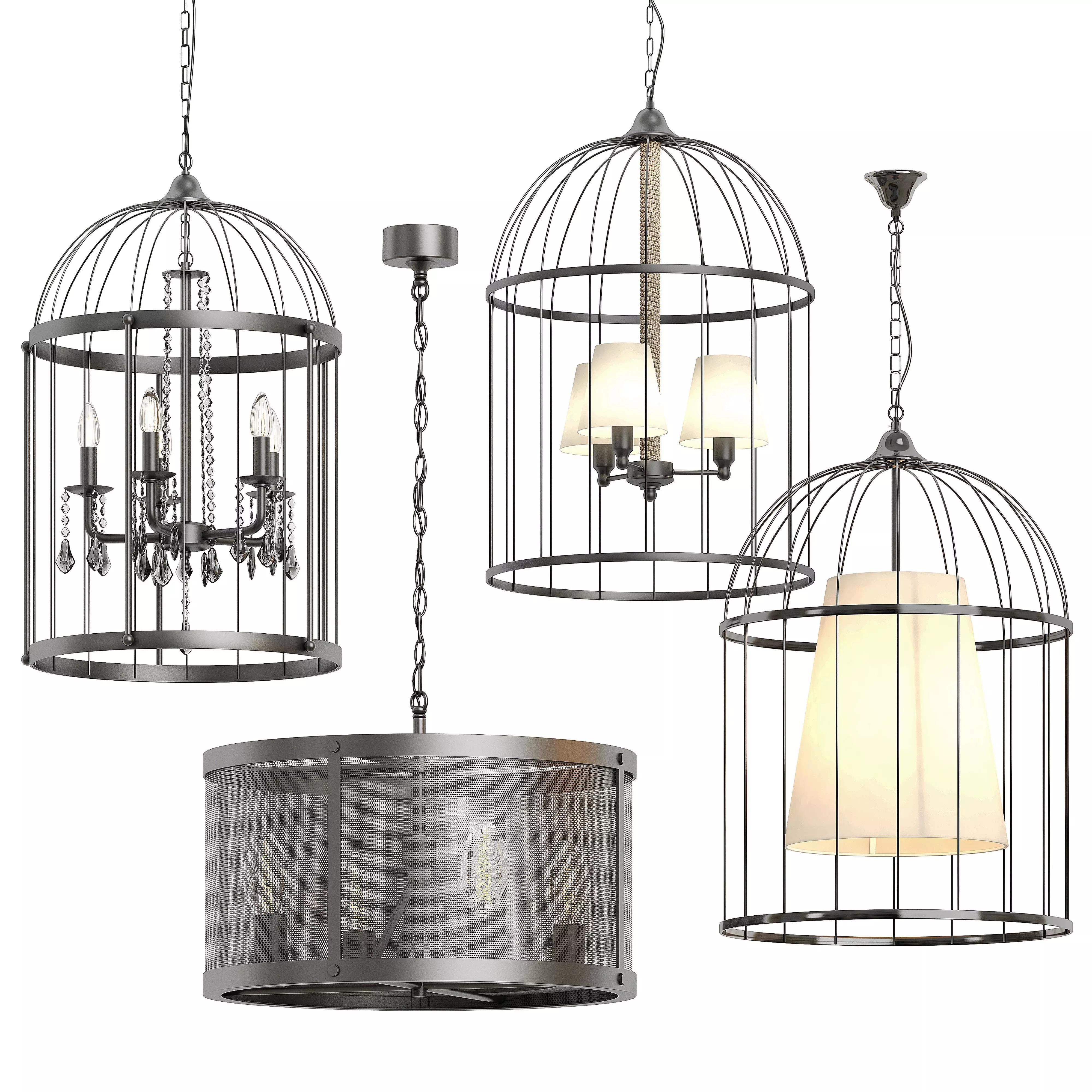 A set of pendant lamps in the loft style. Suitable for interiors of apartments, houses, restaurants and cafes. The model includes: .MAX, .FBX, .MTL, .OBJ files.