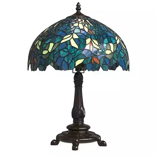 Capture the tranquility of a garden stroll at nightfall with this Nightfall Wisteria accent lamp by Meyda Tiffany. Imagine wandering under darkening skies, past the deepening blooms, and climbing vines of the wisteria shrubbery, as you prepare for a restful night of welcome slumber. This beautiful accent lamp, created with blue, blue/green, and green art glass using the copper foil construction process made famous by Louis C. Tiffany in the early 20th century is a masterpiece to be proudly displayed and privately enjoyed in any home or interior setting.