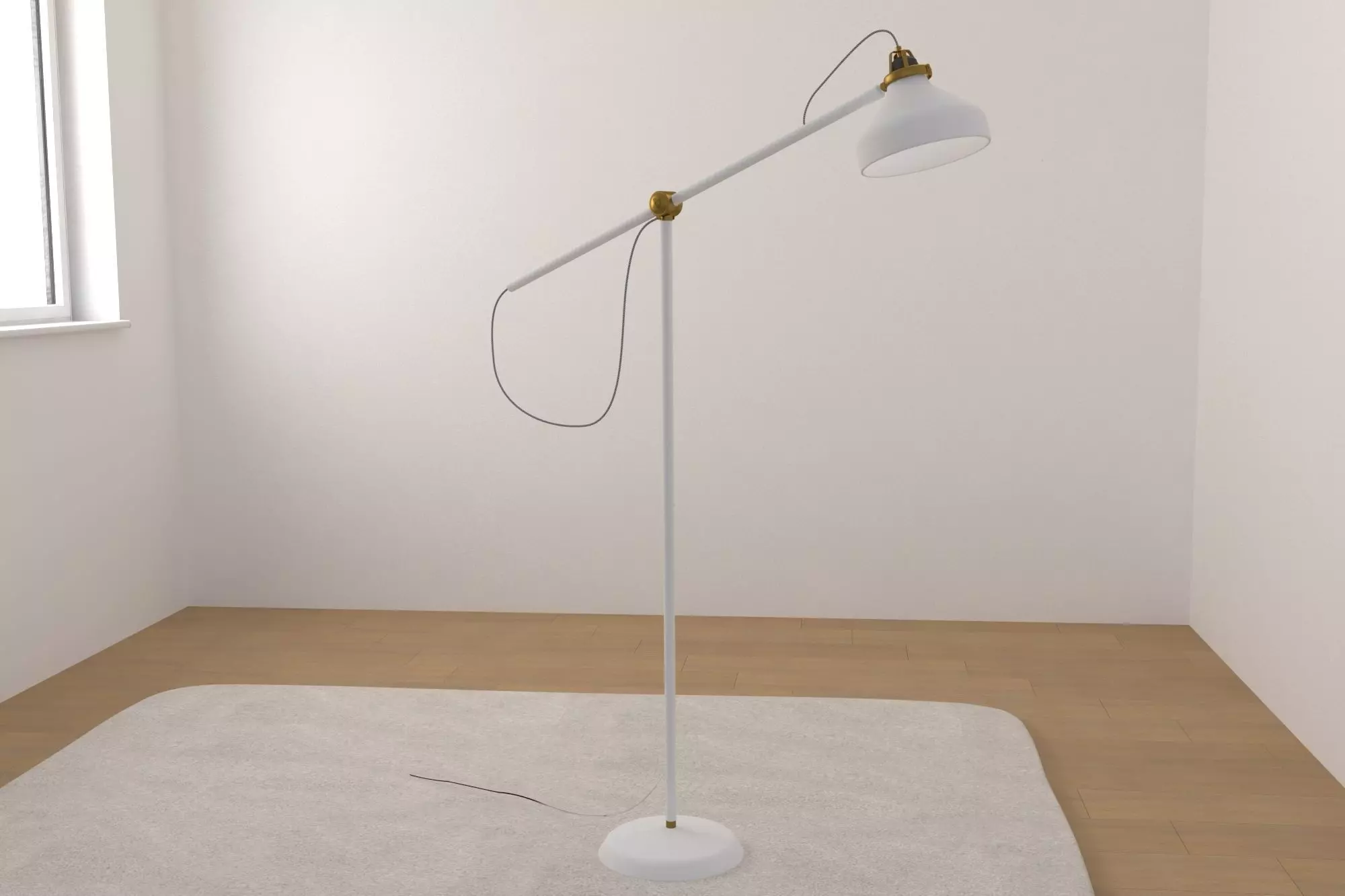 This is a scandinavian style lamp with lighting for a daytime scene. The lamp has a matte white finish, which can easily be turned to the black version of this floor lamp. Applications are a matte gold tone. The model is a reasonable high poly model, perfect for interiour visualization.