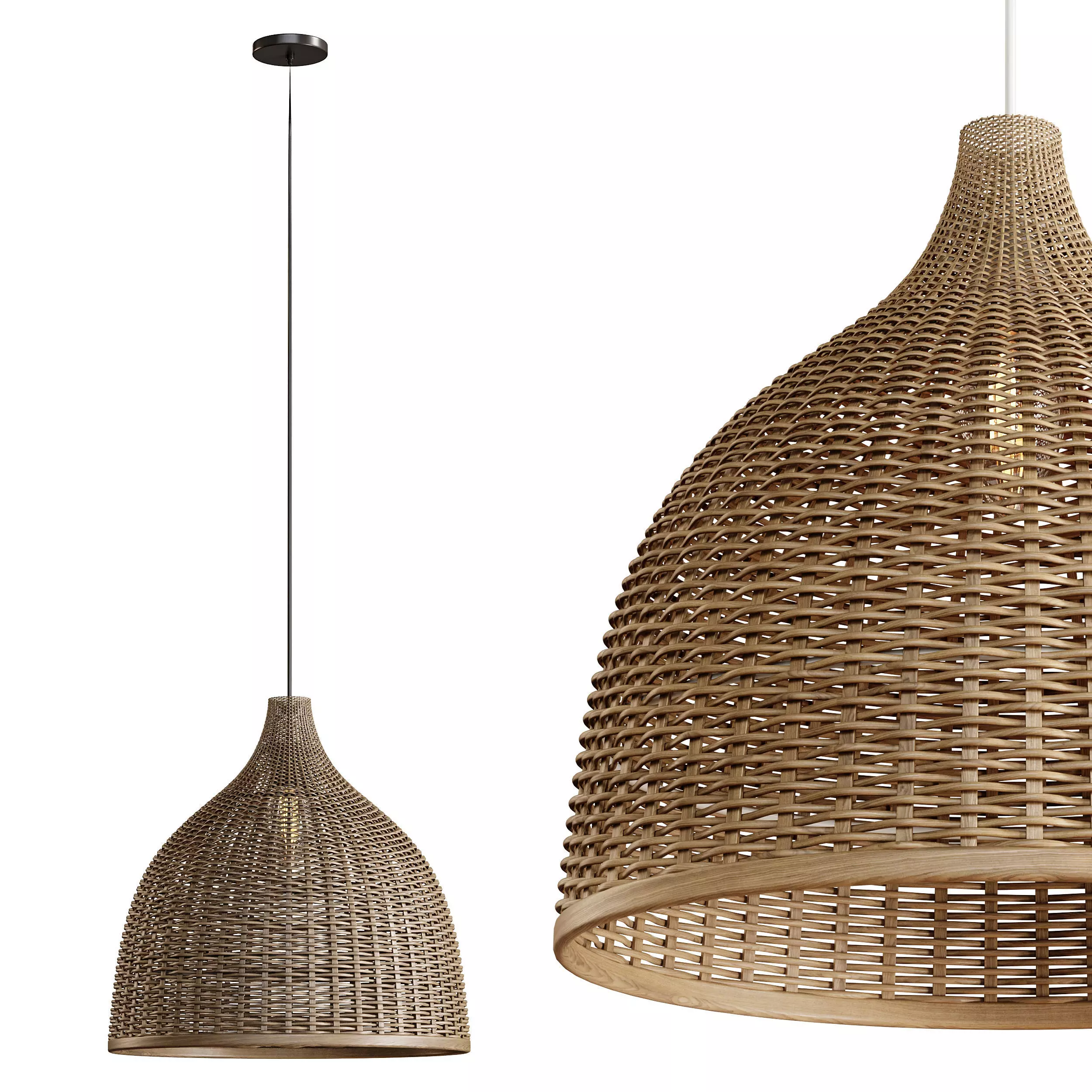 Name: Rattan Pendant Light Handmade Basket LampType: modelFormat: 3Ds Max 2016Export: FBX, OBJRender: Corona 10, V-RayPolys: 547186Verts: 547912Matclasses: CoronaLightMtl, CoronaLegacyMtlUnits: CentimetersDimension: 150.64 x 62.64 x 180.26Description: A handcrafted rattan pendant light designed as a basket lamp. Ideal for modern and natural interiors, this 3D model includes detailed geometry and realistic materials for Corona and V-Ray renders.