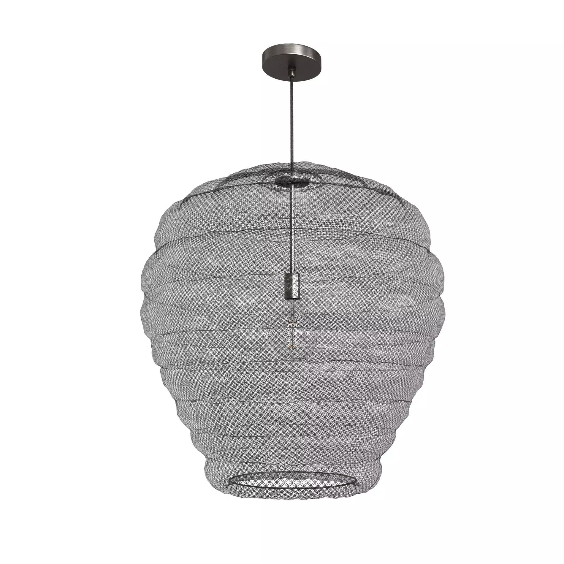 VIEW In Stock ItemsDetailsHandwoven wire mesh is wrapped around an iron frameUses one 9W max. E-26 LED bulbIncludes metal rod and ceiling-mounted canopy in dark bronze finishDimmer switch compatibleCannot be mounted on a vaulted ceiling110-120V manufactured to US standards for US and Canadian marketsCertified to Dry UL electrical standard: suitable for use indoors in dry locations not directly exposed to excessive moisture and waterHardwireRequires professional installation by a licensed electrician. RH delivery service does not include installationDue to the handmade nature of this item, no two are exactly alike; dimensions are approximateWipe with a soft, dry cloth; avoid the use of all cleaners and abrasivesDimensionsShade: 30diam., 30HCanopy: 5diam., 1HCord: 72"Weight: 9 lbs.