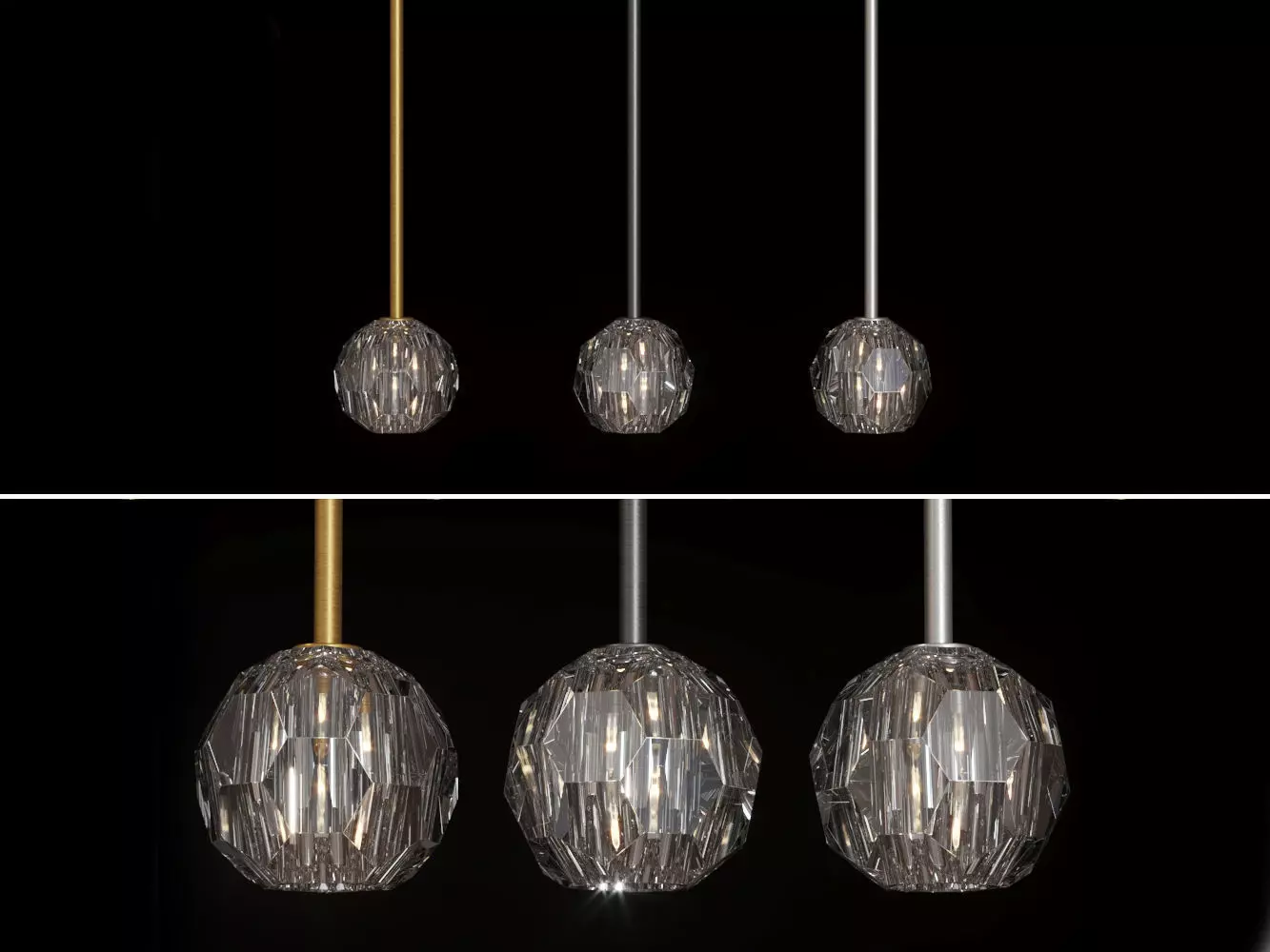 BOULE DE CRISTAL SINGLE ROD PENDANT (Brass, Nickel, Black)DIMENSIONSOverall: 5diam., 72H