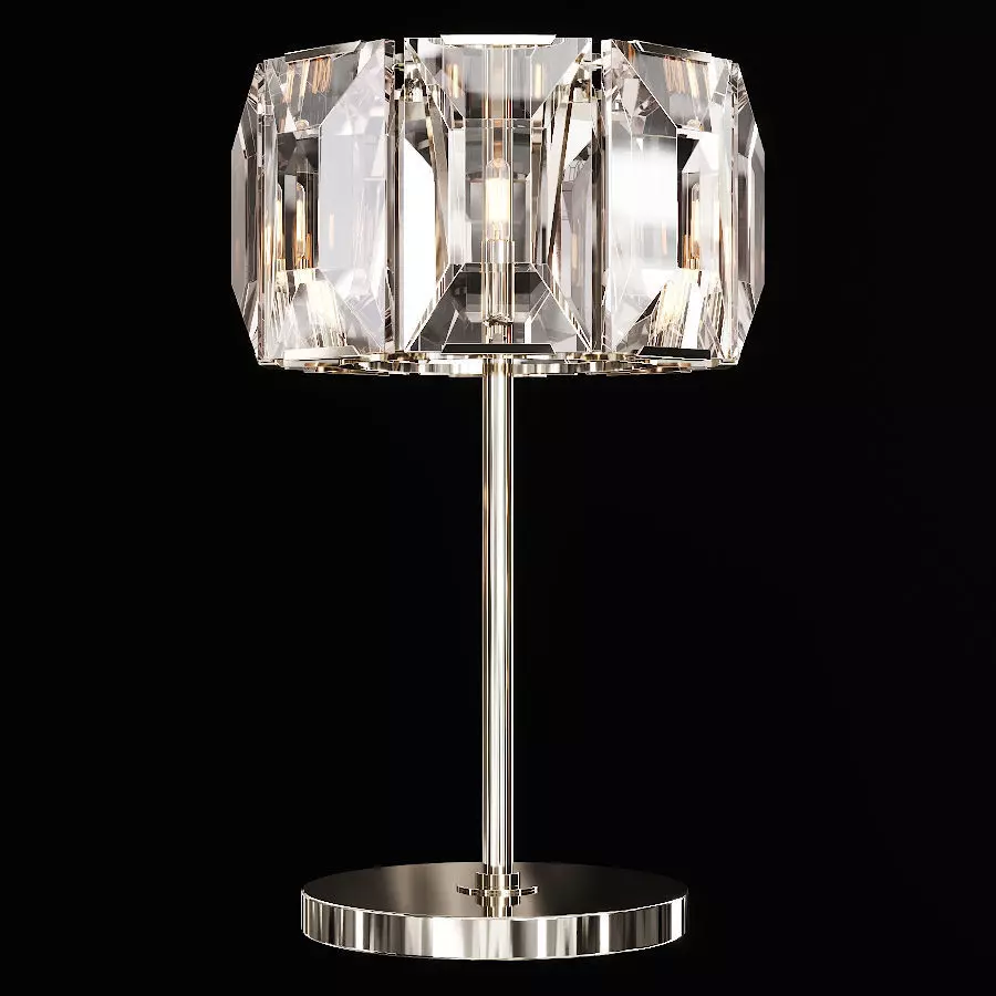 Frame and center support built of ironFitted with a spaced band of rectangular crystal glass prisms, secured at top and bottom with bold metal mountsGlass prisms are made of k9 glass, used to make optical lenses and prismsIn grey iron with clear crystal glassMarble base accented with natural veiningUses four 25W max. candelabra equivalent bulbs; includes five Vintage Cylinder Candelabra Filament BulbsDry UL listed; suitable for use indoors in dry locations not directly exposed to excessive moisture and waterBlack cord