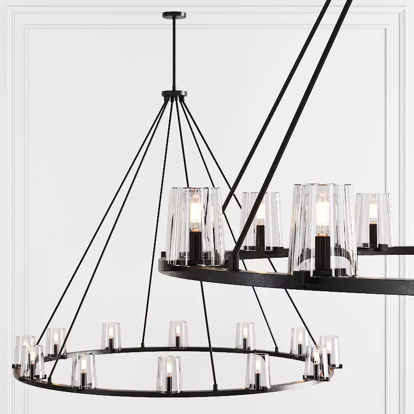 RH PAUILLAC ROUND CHANDELIER 60 Glass shade and Black 3D model
