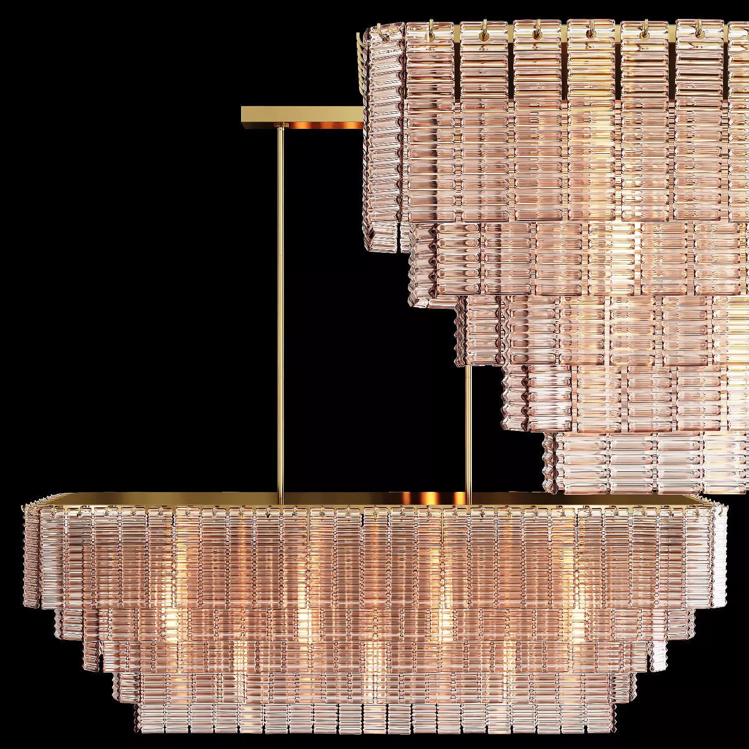Inspired by 1950s Venetian fixtures of Murano, Italy, our chandelier combines traditional glassmaking craftsmanship and modernist style. A study in geometric repetition, ribbons of textured cast glass cascade in concentric rings, casting a warm glow to stunning effect.