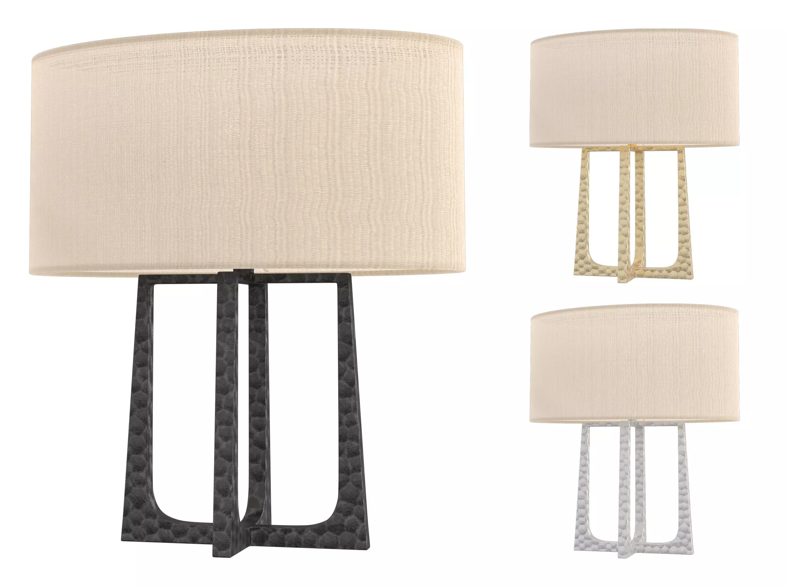 Spare and elegantly minimal, our fixture by Ian K. Fowler defines refined simplicity. A hand-forged, hammered metal frame – its arms perfectly tapered – showcases tailored white linen shades. An exercise in balance and proportion, it conjoins light and dark, crisp right angles and understated curves.