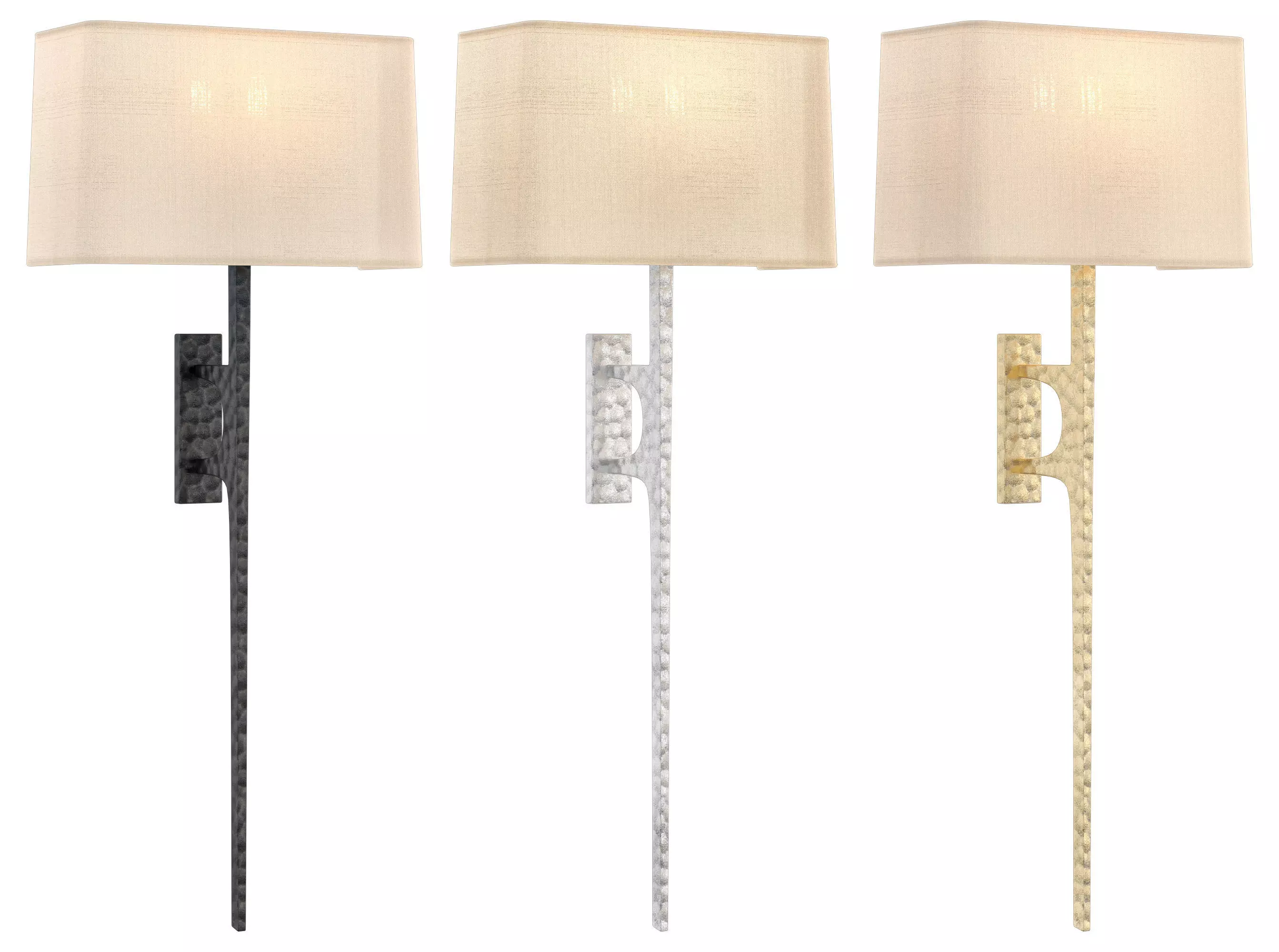 Spare and elegantly minimal, our fixture by Ian K. Fowler defines refined simplicity. A hand-forged, hammered metal frame – its arms perfectly tapered – showcases tailored white linen shades. An exercise in balance and proportion, it conjoins light and dark, crisp right angles and understated curves.