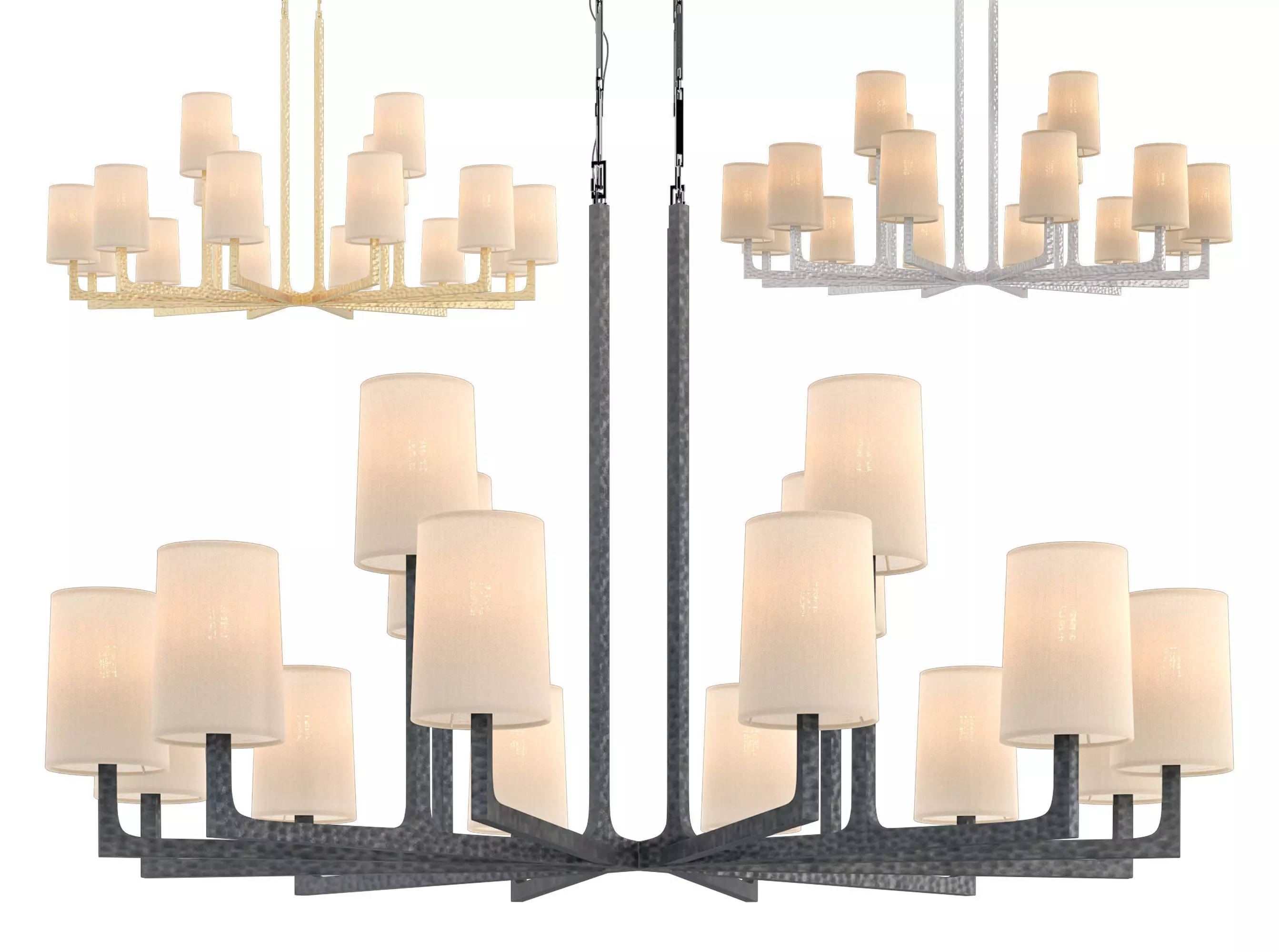 Spare and elegantly minimal, our fixture by Ian K. Fowler defines refined simplicity. A hand-forged, hammered metal frame – its arms perfectly tapered – showcases tailored white linen shades. An exercise in balance and proportion, it conjoins light and dark, crisp right angles and understated curves.