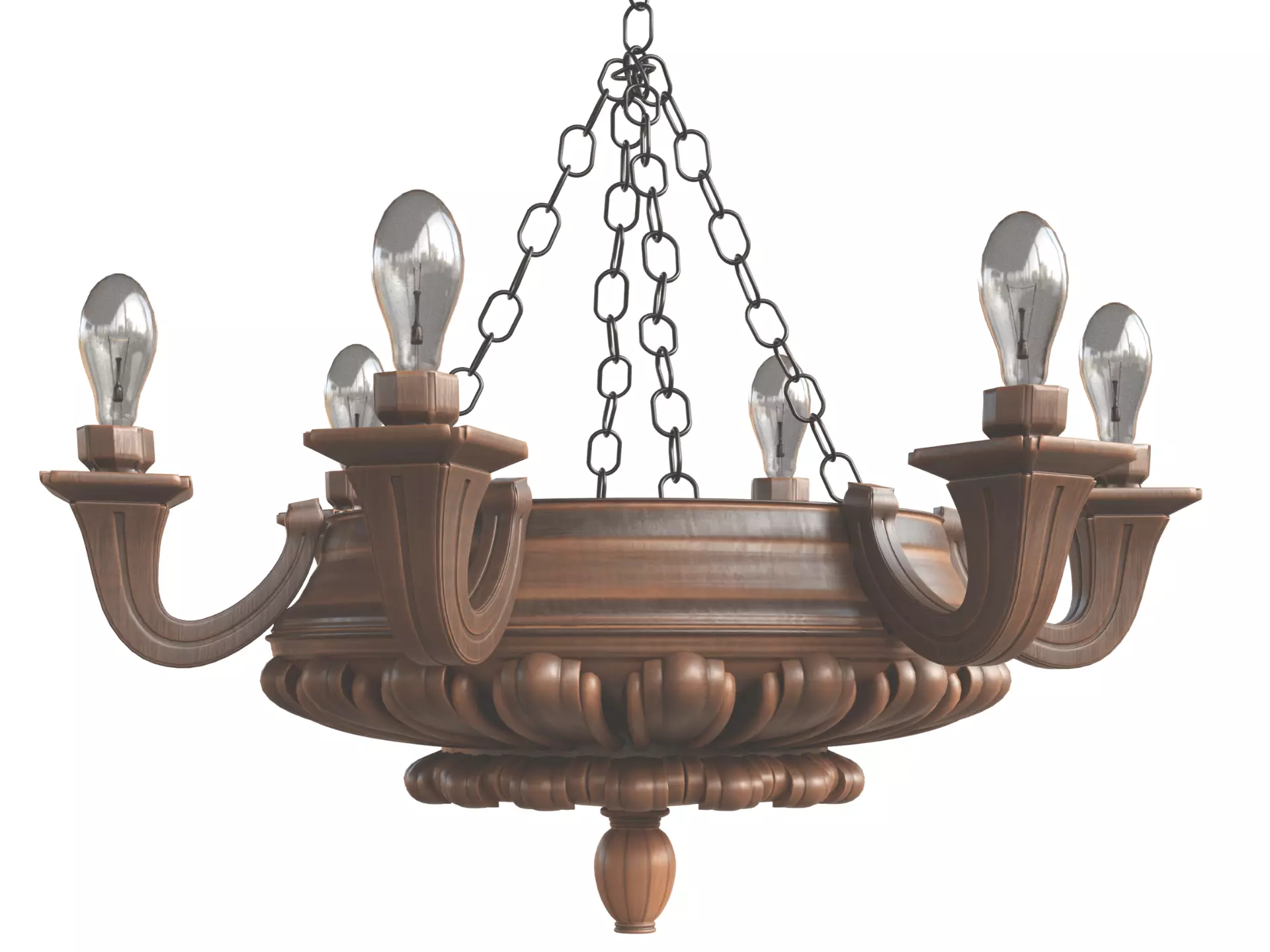 Royal Antique Wooden Chandelier with LODs Low-poly 3D model