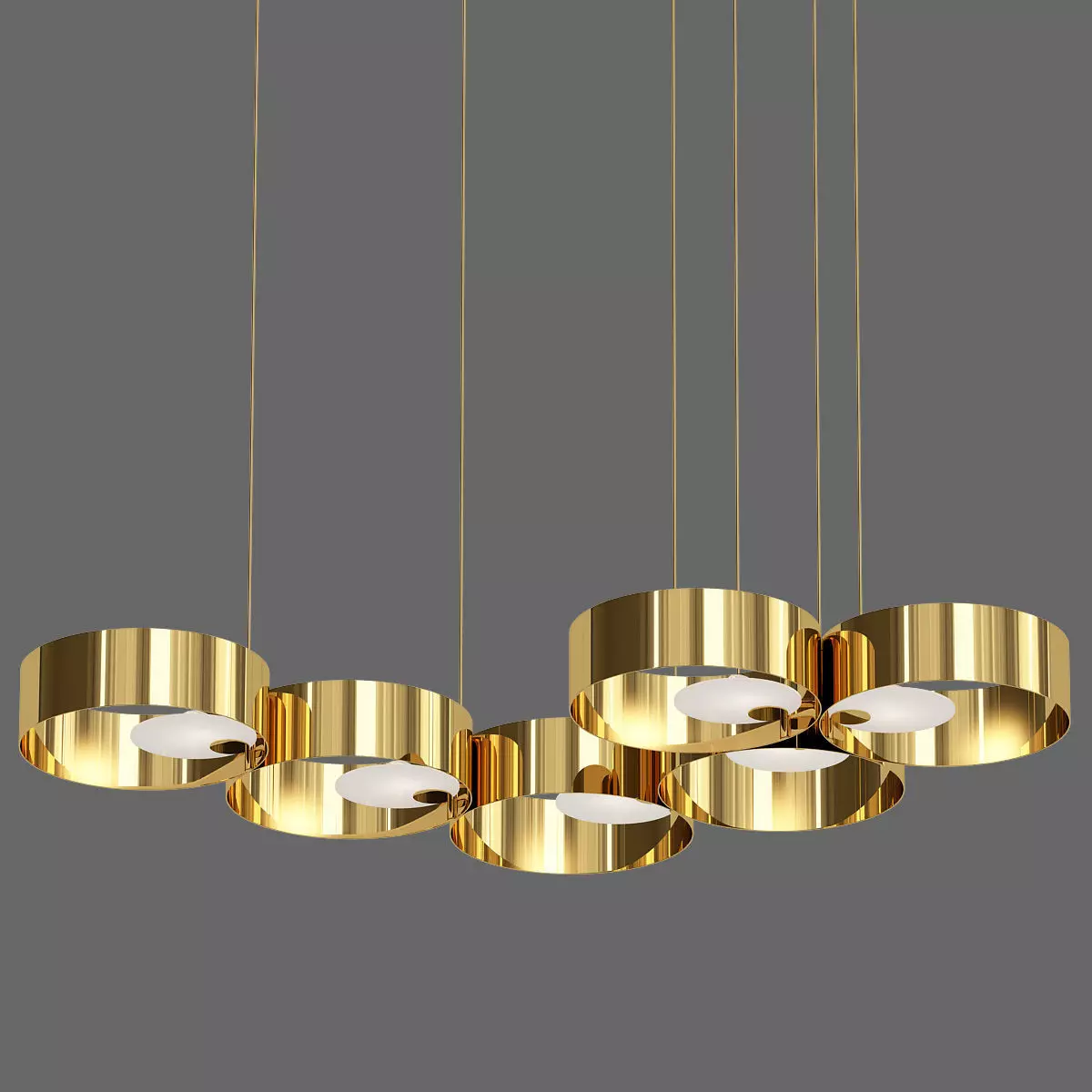 SOUND gold pendant light with four circles hanging from it 3D model