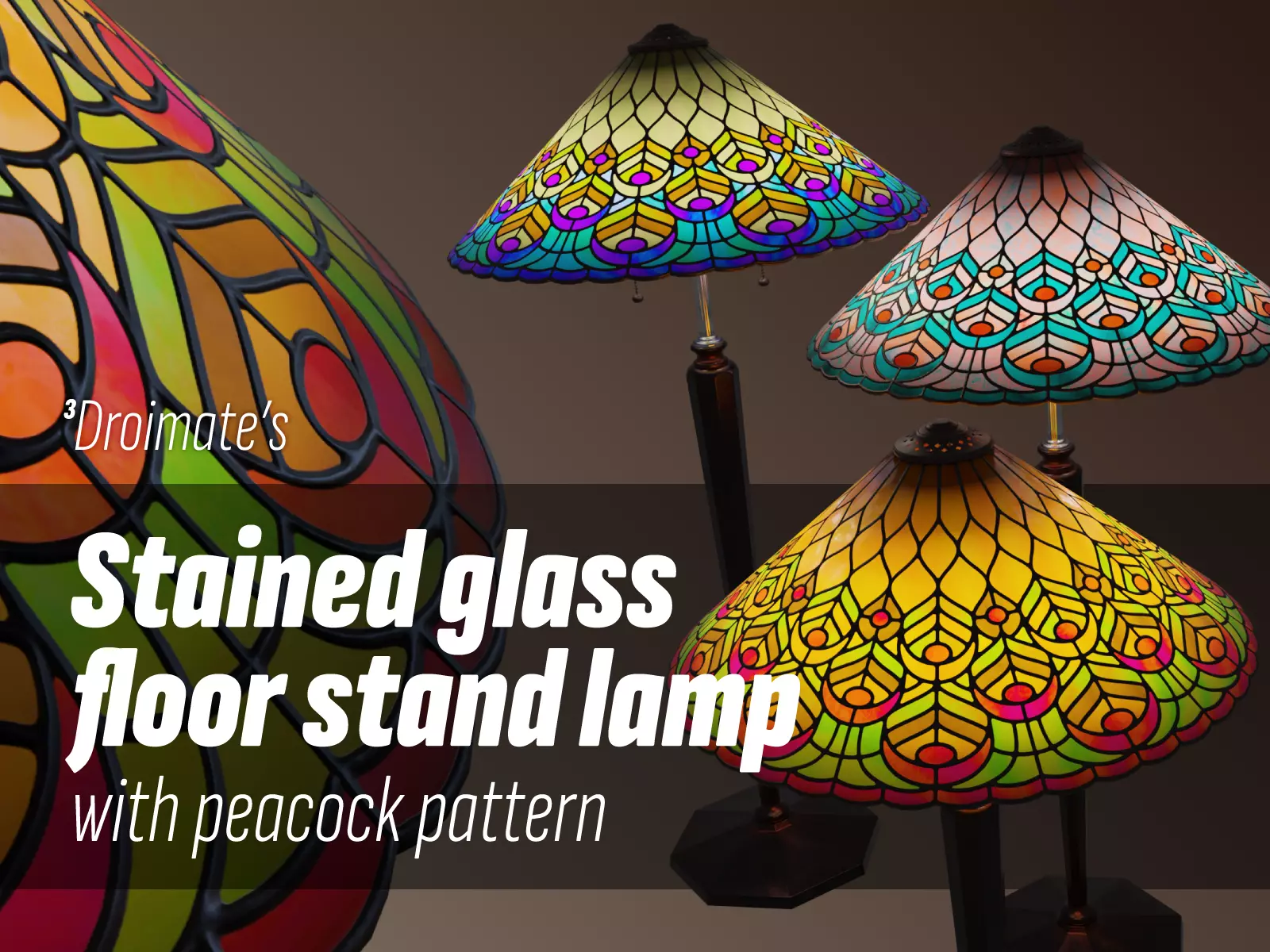 Stained glass floor stand lamp with peacock pattern Low-poly 3D model