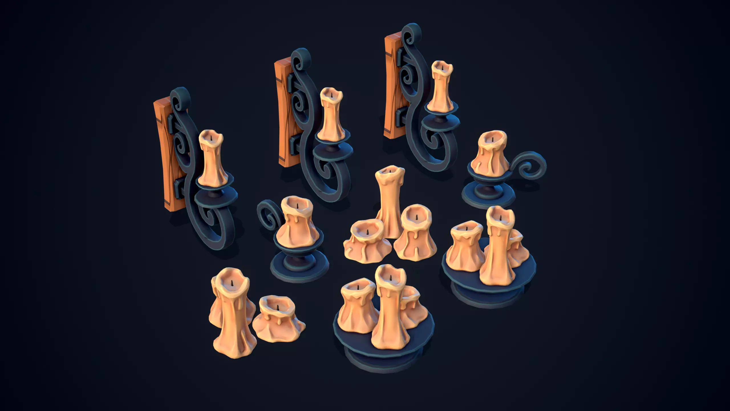 Stylized Design: Unique, flowing wax candles and ornate metal holders.Modular Elements: Easy to integrate and customize in various scenes.Optimized for Performance: Ideal for use in game engines like Unity and Unreal Engine.Fantasy-Themed: Perfect for medieval, fantasy, and RPG settings.