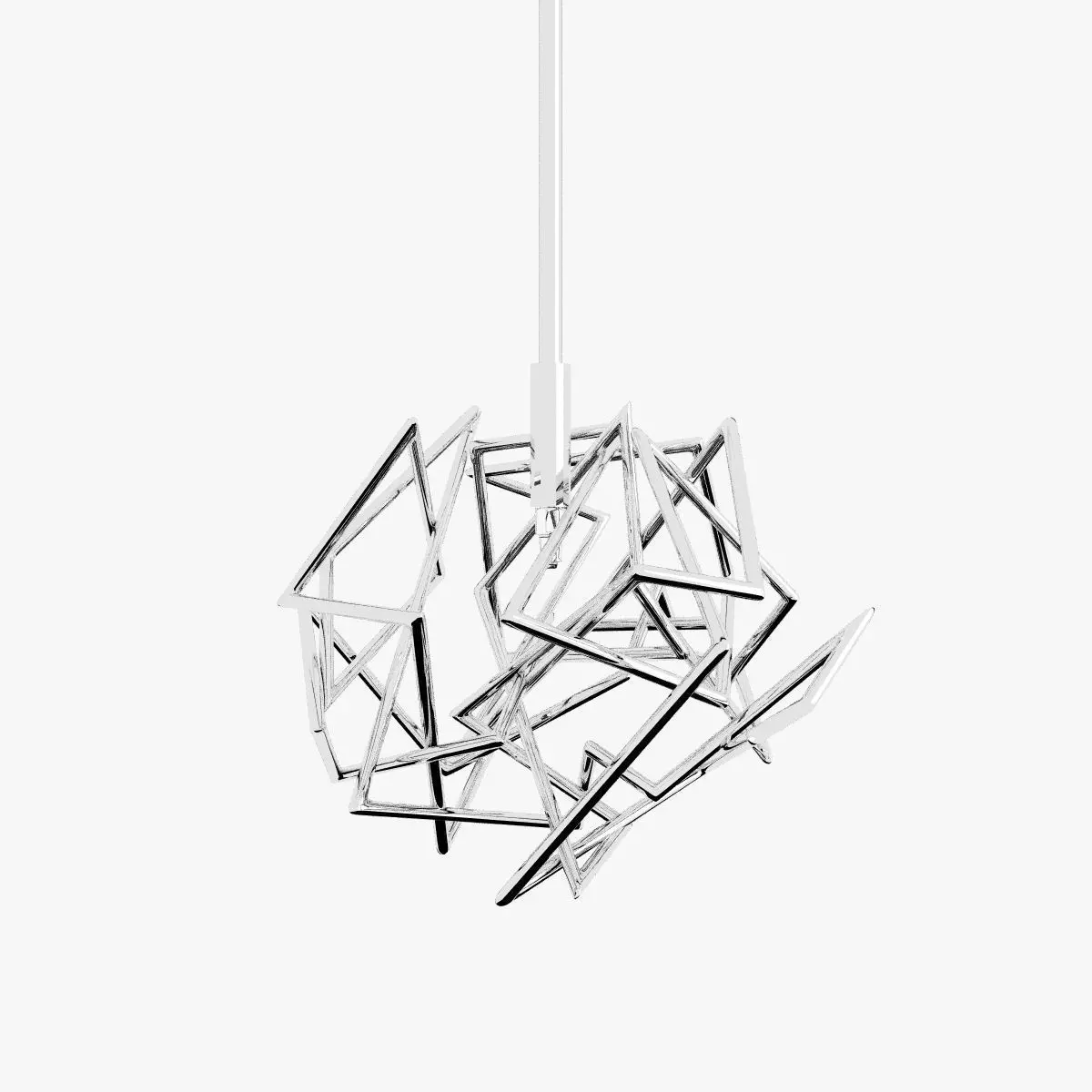 This is high poly lamp.Sub dividable.No textures needed.V-Ray native render.A CELESTIAL SUSPENSION OF INTERWOVEN NICKEL-PLATED METAL SHAFTS, ETOILE TWINKLES IN ALL DIRECTIONS CREATING A GENTLE PLAY OF LIGHT AND SHADOW FOR ANY SPACE. DESIGN CHRISTIAN LAVA.