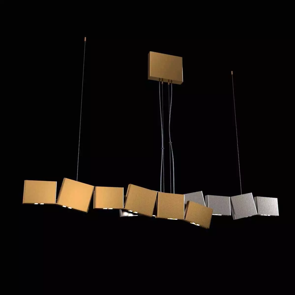 In Greek mythology, Gaia is the personi cation of the Earth and the mother of all life.Looking to capture the mythical and natural beauty of this Earth goddess, designer Jean-François Crochet has created the Gaia pendant light. Consisting of geometric frames of brass or raw metal reminiscent of the mountains Gaia created, the pendant uses led light to push light through the “cracks” formed. The resulting light creates a magical feeling, as if the lights peaking through were alive themselves. Available to custom con gurations, Gaia adds a vibrancy and sacred light to any space. Design Jean-François Crochet.dimensions125cm wide15 cm metal rectangle heigh