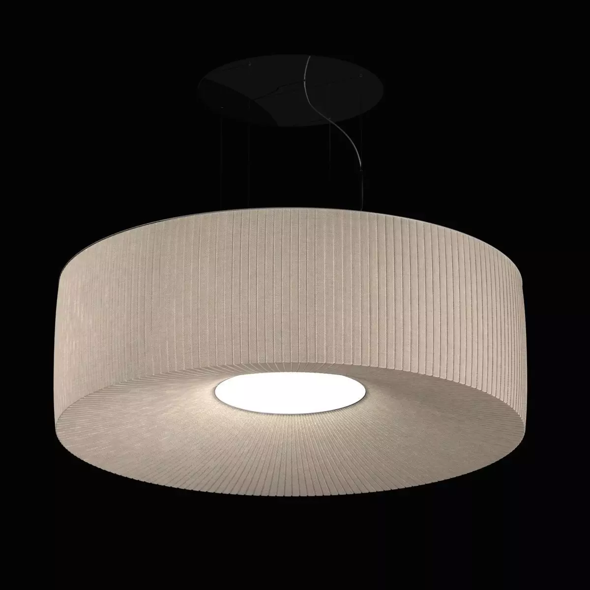 The Tessuti Round 4 Light Pendant Light features a metallic body elegantly covered in pongee, a thin, soft woven polyester fabric. Available in black, ivory or tobacco fabric shade options