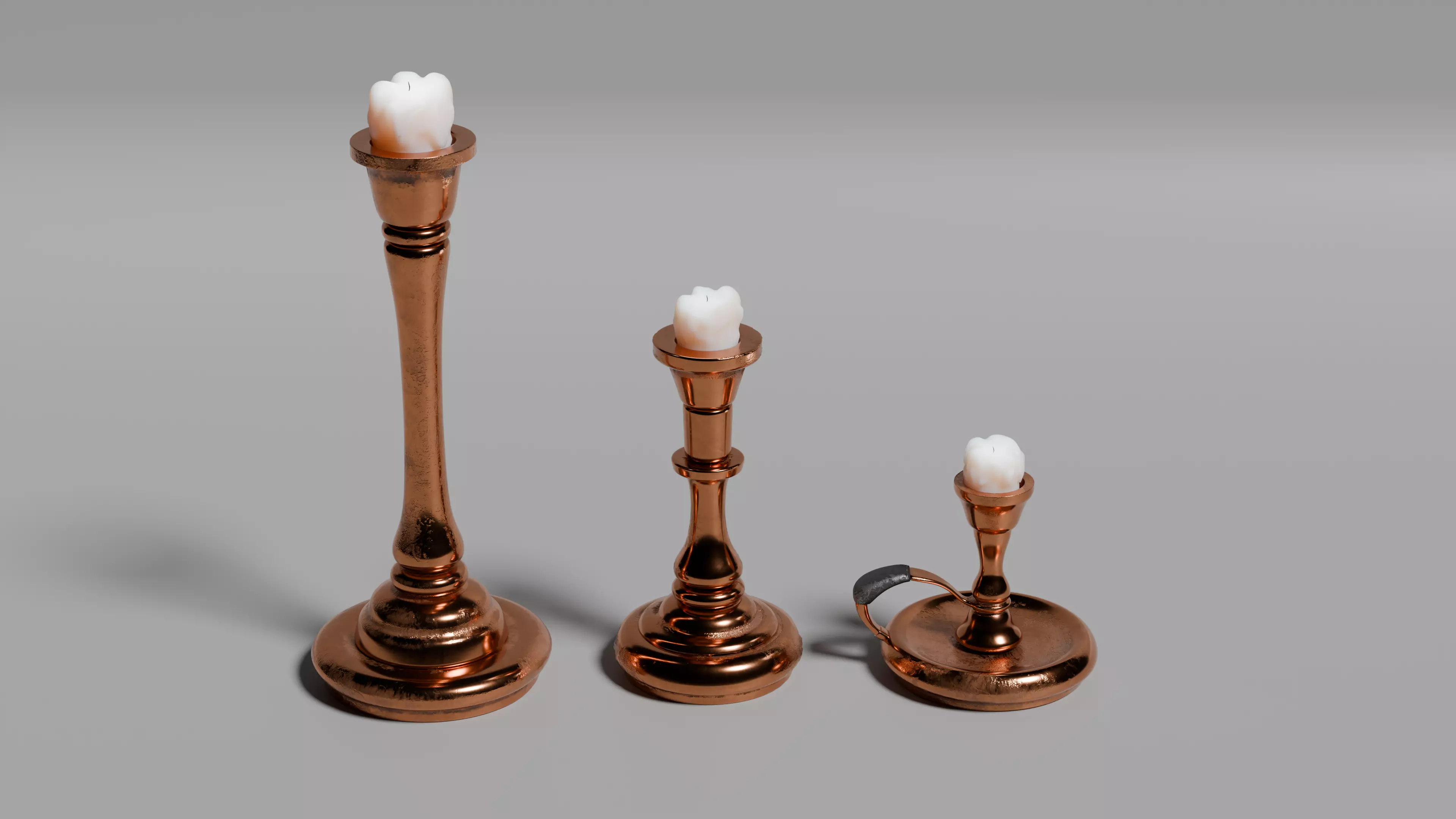 Three Bronze Candlesticks with Mild Aging 3D model