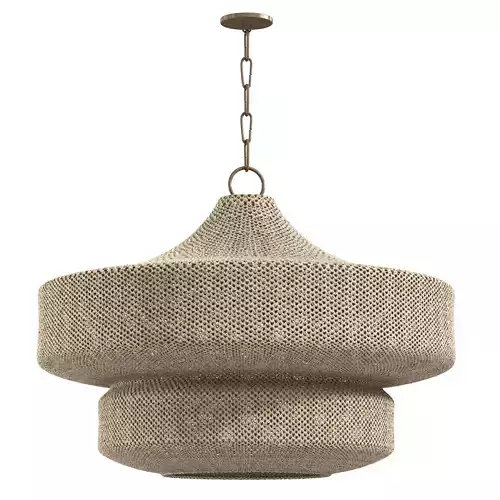 Inspired by the sea-faring community of Scotland, Thurso hovers between tension and release. Recalling the comfort of a ferry station during harsh conditions, the artist Chandler McLellan sought to imbue this pendant with a soft warmth in both materiality and luminance. A thick off-white cotton crochet fabric has been stretched across the tiered framework of the fixture, naturally dipping in certain areas. As the weave eases and pulls, it creates larger and smaller gaps for light to escape. Coordinating with the earthy nature of the cord, the Bronze metalwork anchors this light-as-air pendant. Part of our Chandler McLellan collection.