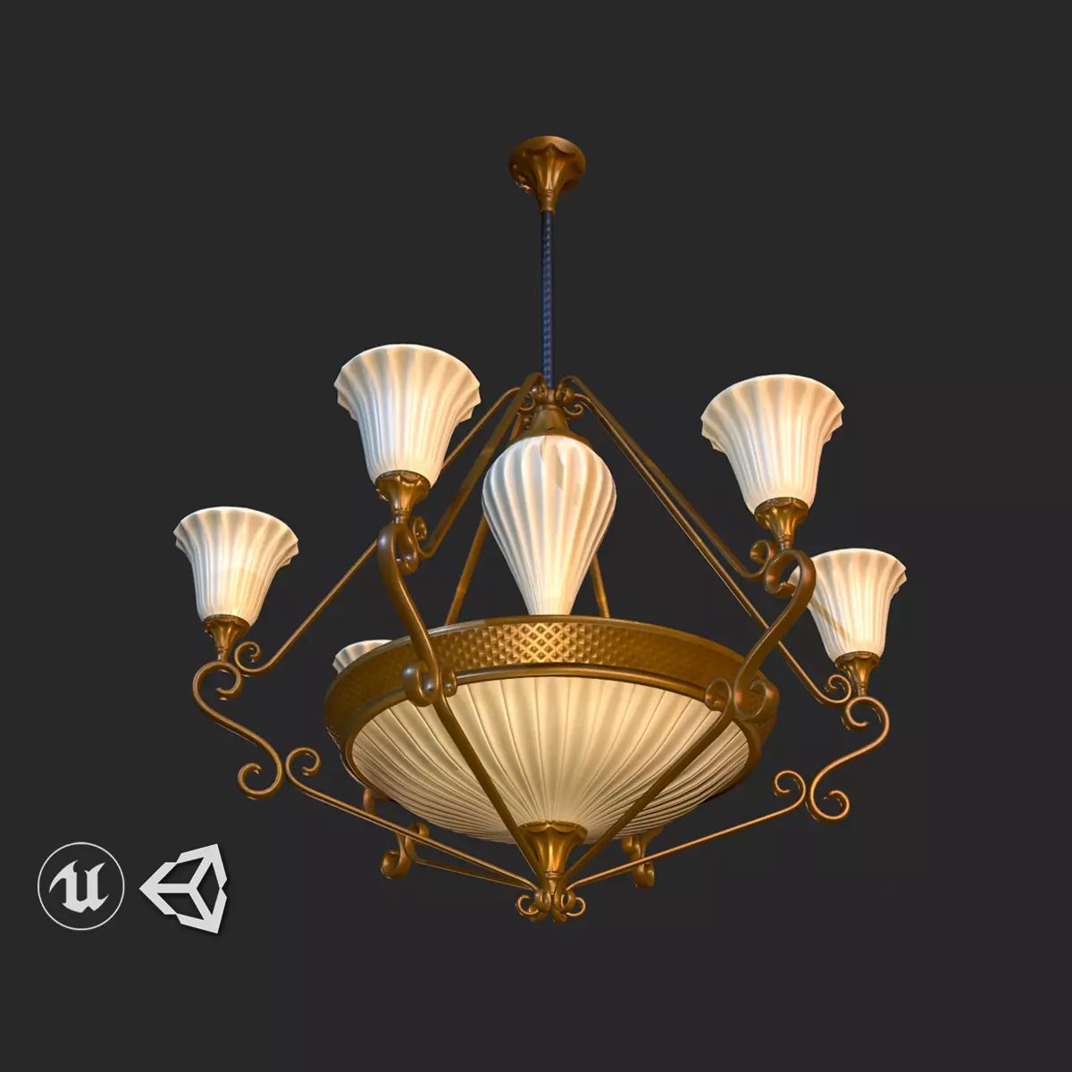 Vintage Chandelier PBR High Quality 3D Model ( Ready for Games AR/VR and Visualization)