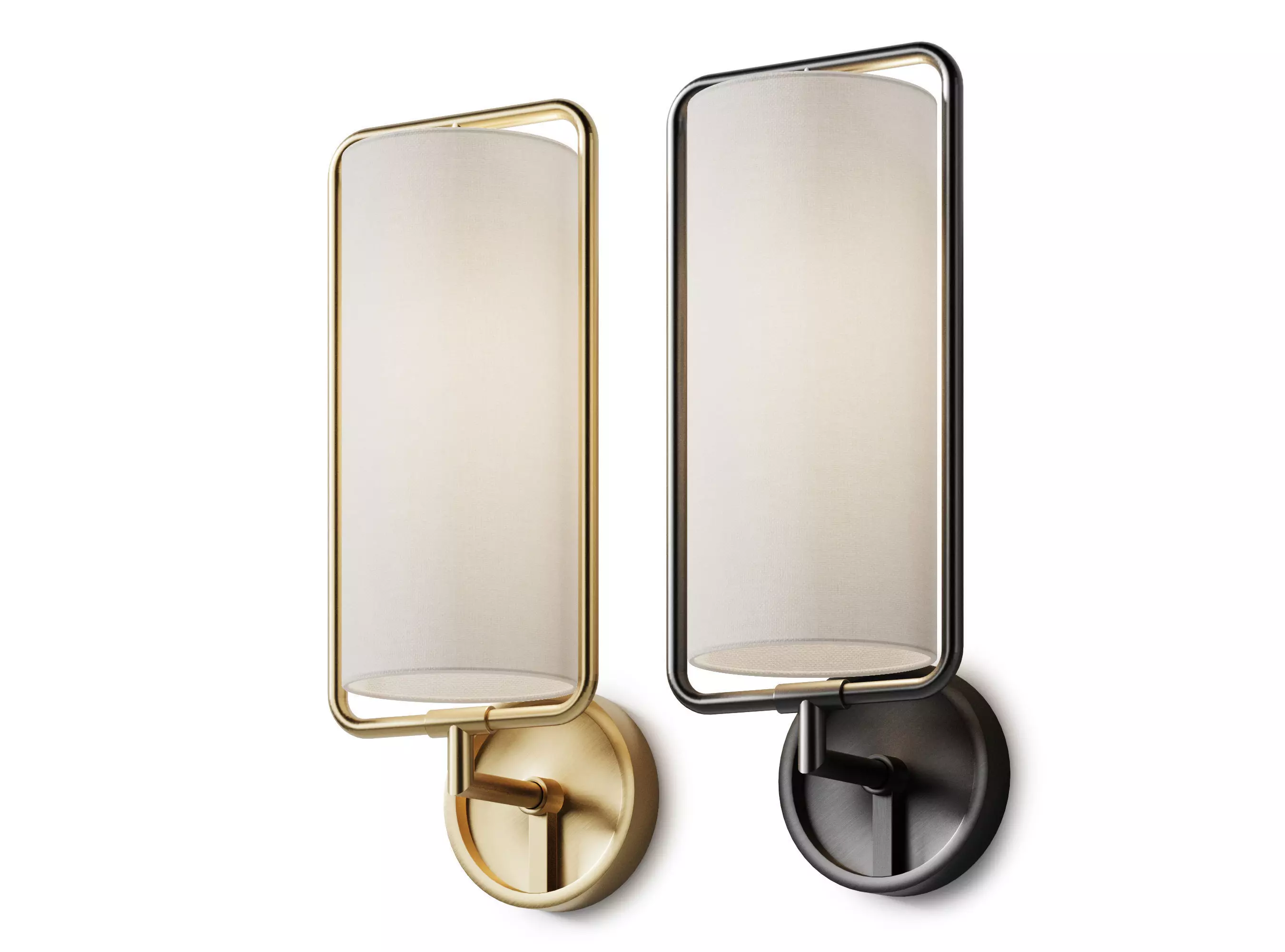 The bright natural linen shade is enclosed in a tubular steel frame, creating an ultra-modern look. The magnificent geometric and expressive silhouette combines an innovative combination of round, rectangular and cylindrical shapes to seamlessly merge form and functionality.The Geo Rectangle wall lamp is an ideal piece for a home office that doubles as a library, or for living rooms that turn into entertainment areas.