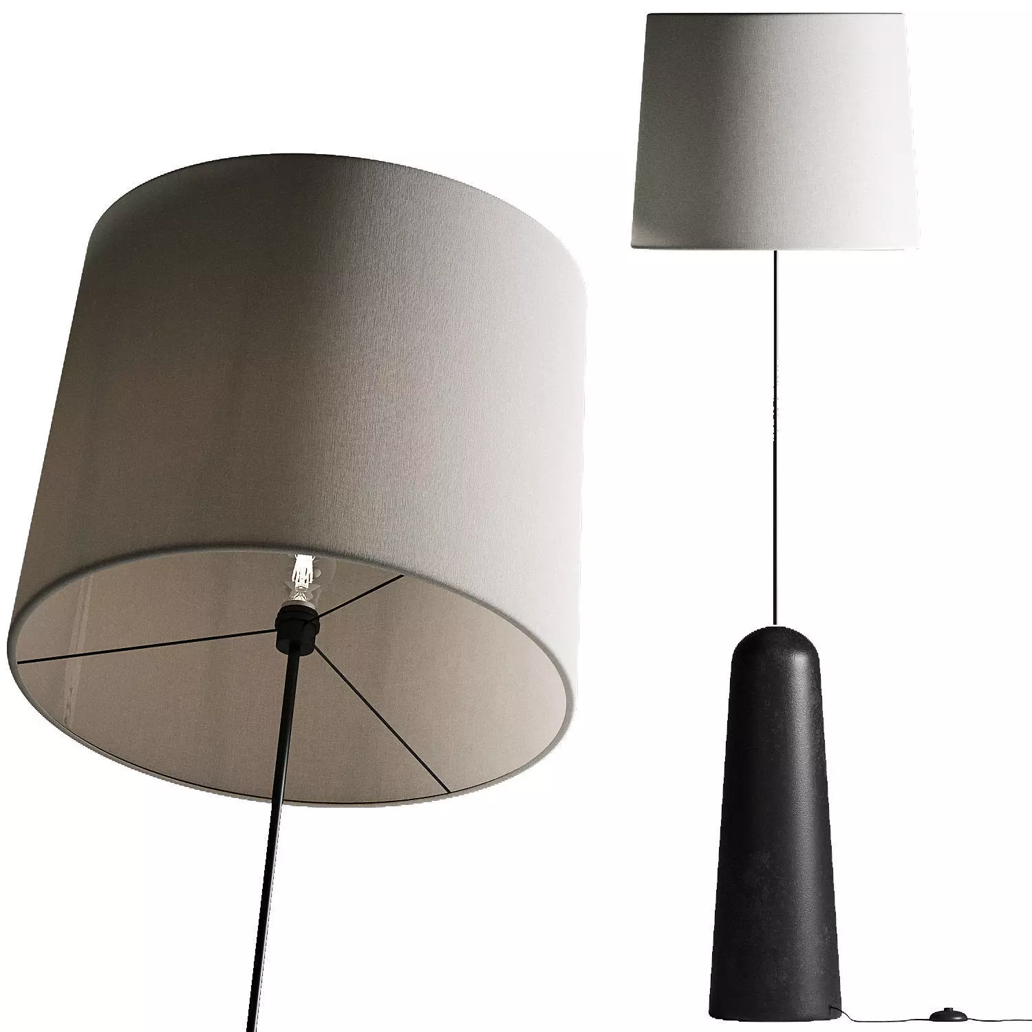 The model has material settings that define how surfaces look (color, shine, transparency, etc.).
