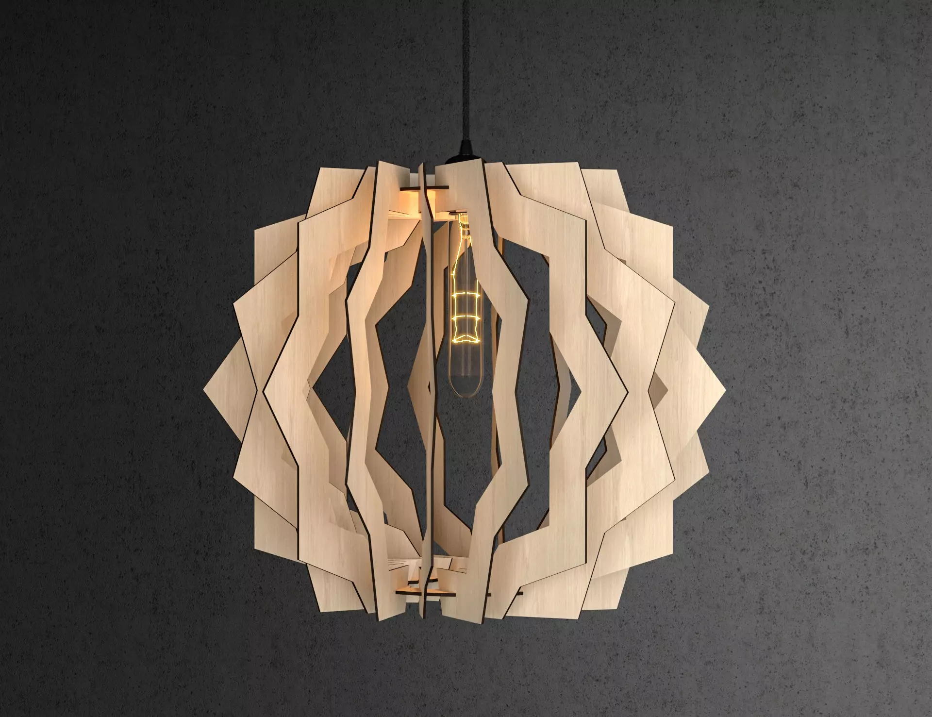 This lamp can be made by laser cutting machine. DWG Lasercut blueprint include. For 4 mm wood thickness.