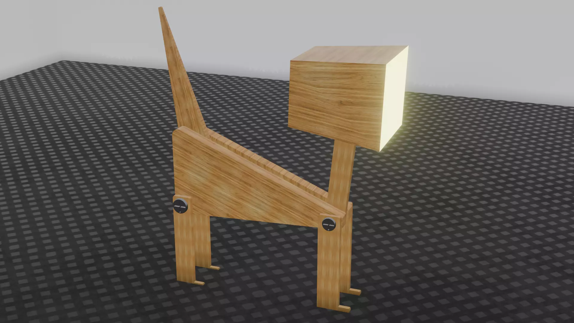The model includes the glowing light cube head and a minimalistic wooden body, inspired by animal posture — ideal for creative workspace, bedroom, or concept art.