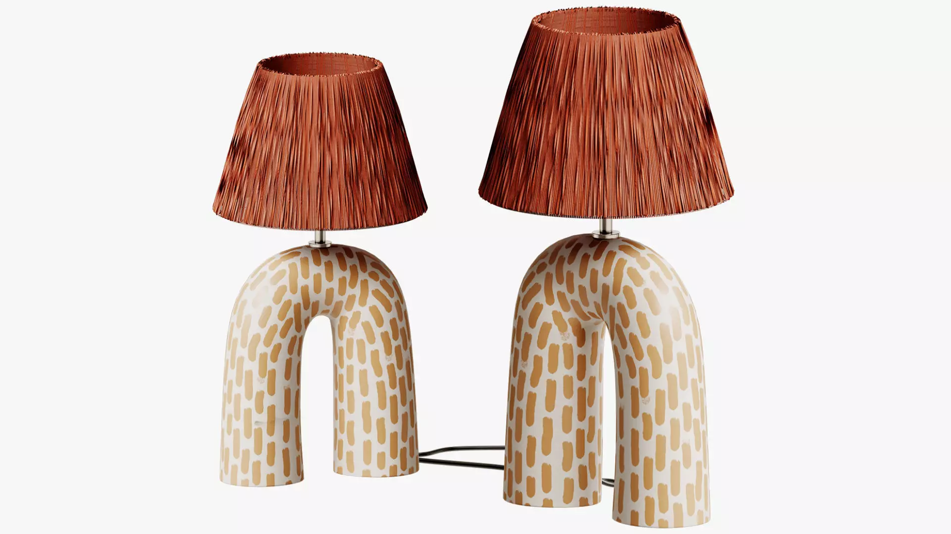 White & Orange Dash Pattern with a Matte Finish and Pale Rust Recycled Paper Raffia Shade
