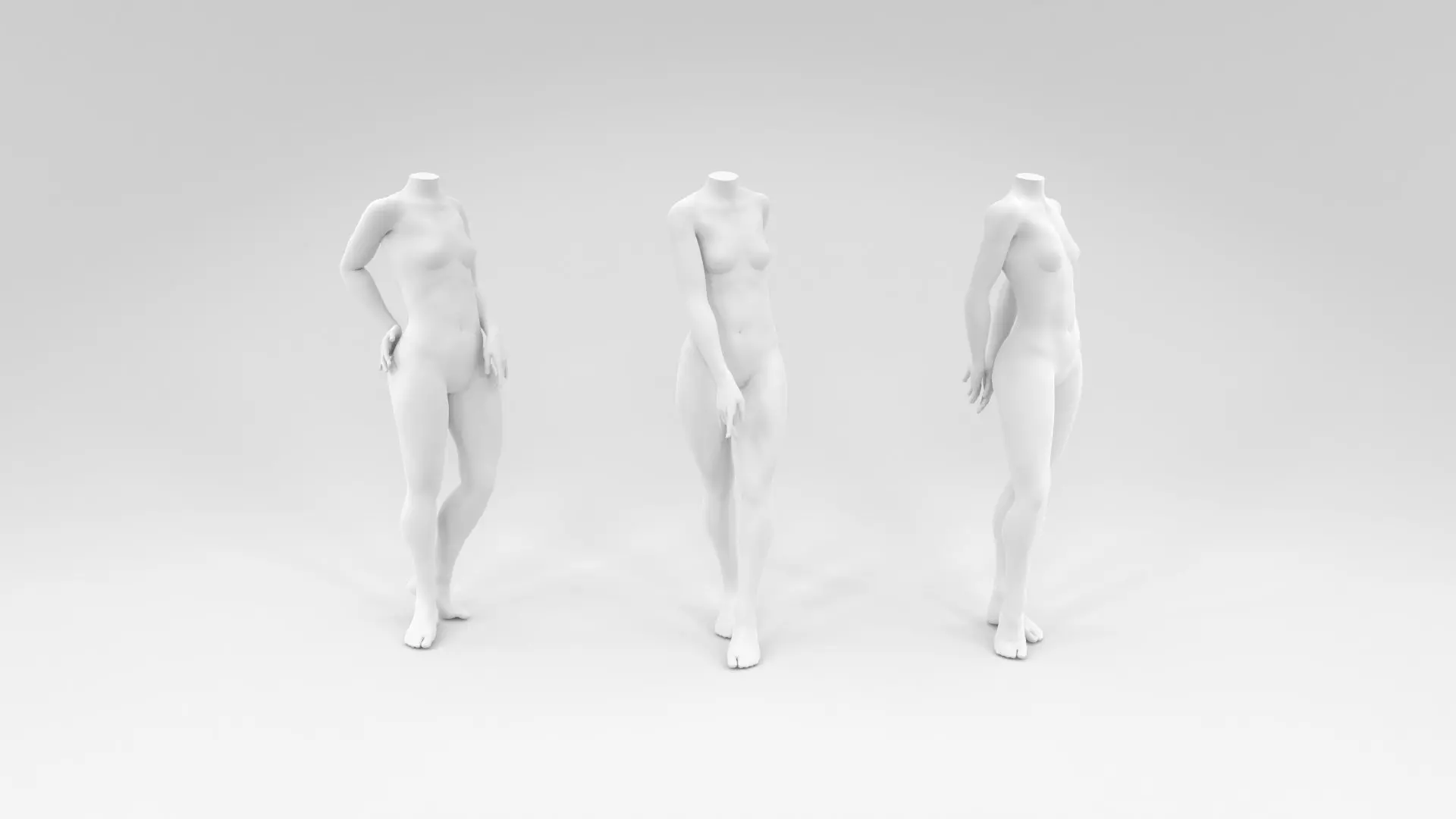 Realistic headless Feminine Fashion Mannequins for fashion production and display. This 3 piece set is a part of a 13 piece Fashion Mannequin bundle.