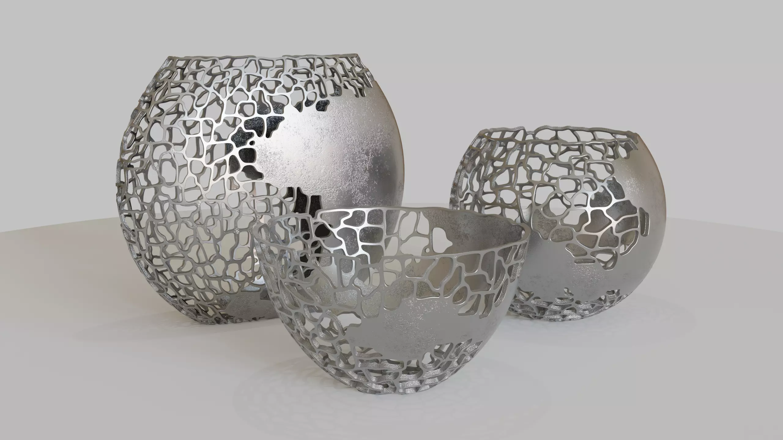 The file includes three abstract vases models. They were made looking for a balance between realism and a model without an exaggerated amount of polygons, so as not to compromise the rendering work. The model is great for composing the scene.