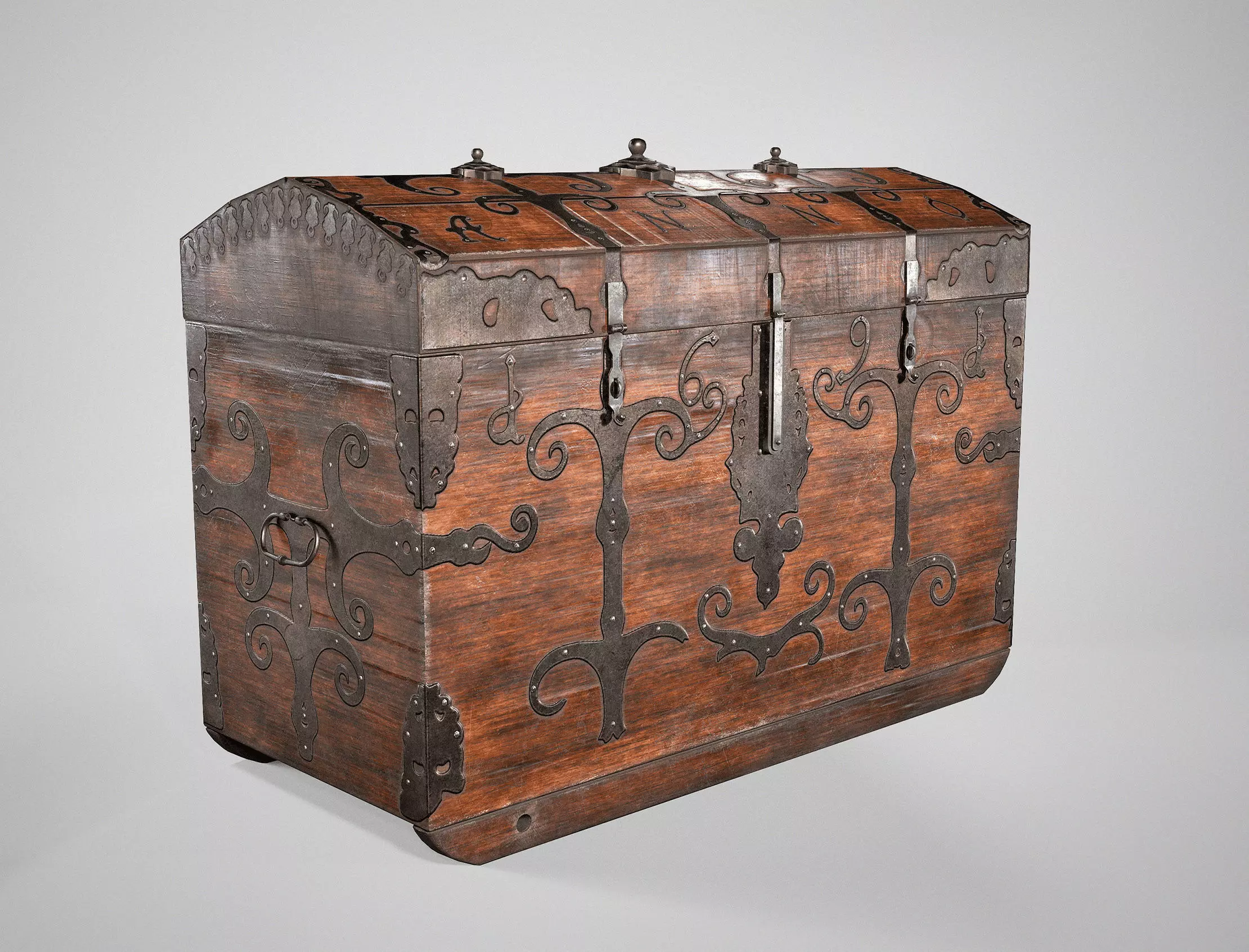 This is a highly detailed, PBR, AAA, low-poly and game ready model of an old medieval treasure chest with antique iron ornaments.This realistic 3D model of a wooden treasure trunk is perfect for mmo, action, rpg, strategy games in fantasy, adventure and other medieval genres. It can also be used in movies, TV shows, video clips, cartoons to extend your filming set.It was modeled by me in Autodesk Maya 2022, textured in Substance Painter and rendered with Marmoset Toolbag 4.