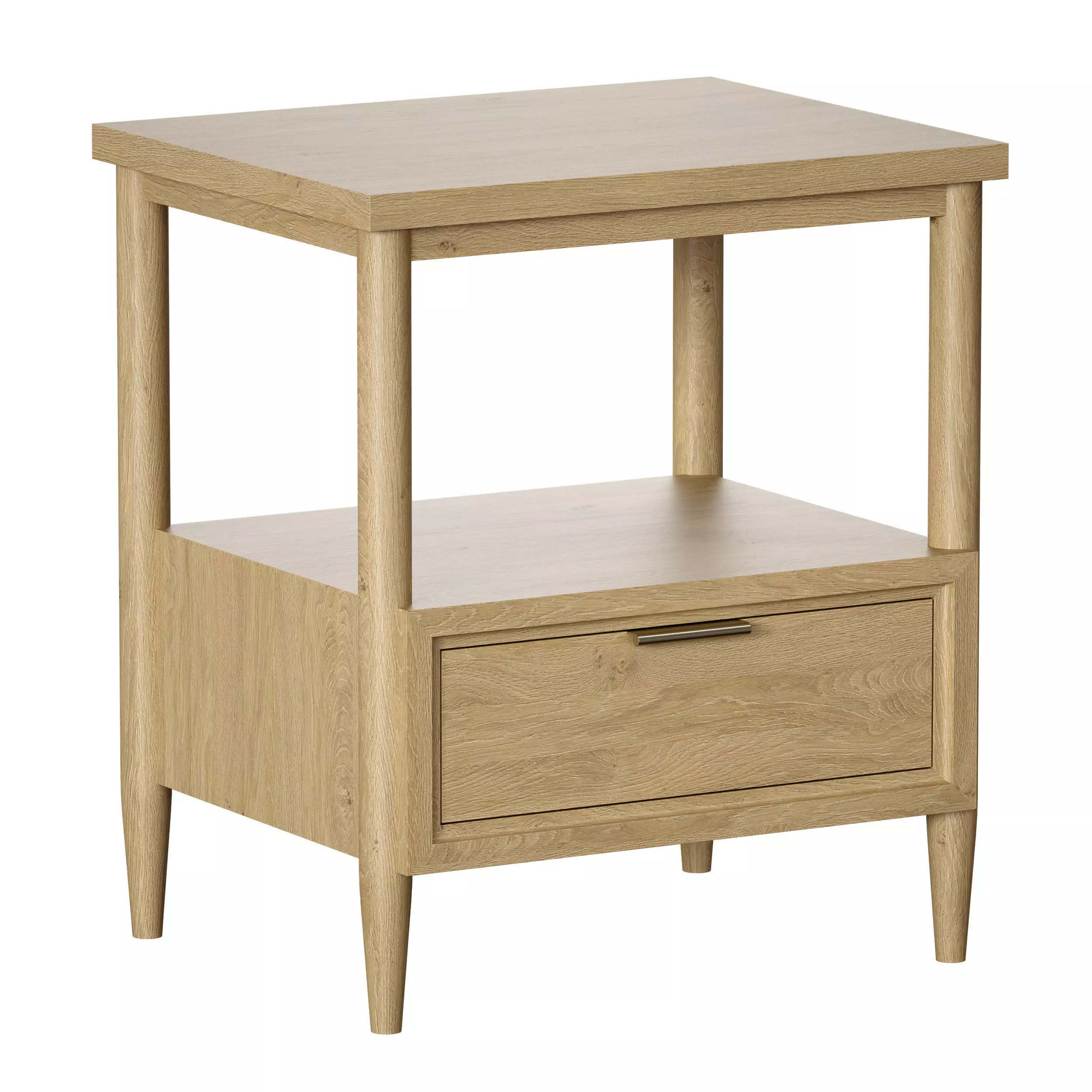 3d model of a bedside table (bedside table) Bodie Natural Oak Wood Kids Nightstand with Drawer (Crate and Barrel). It is made of wood with a light oak texture. Metal handle in bronze.