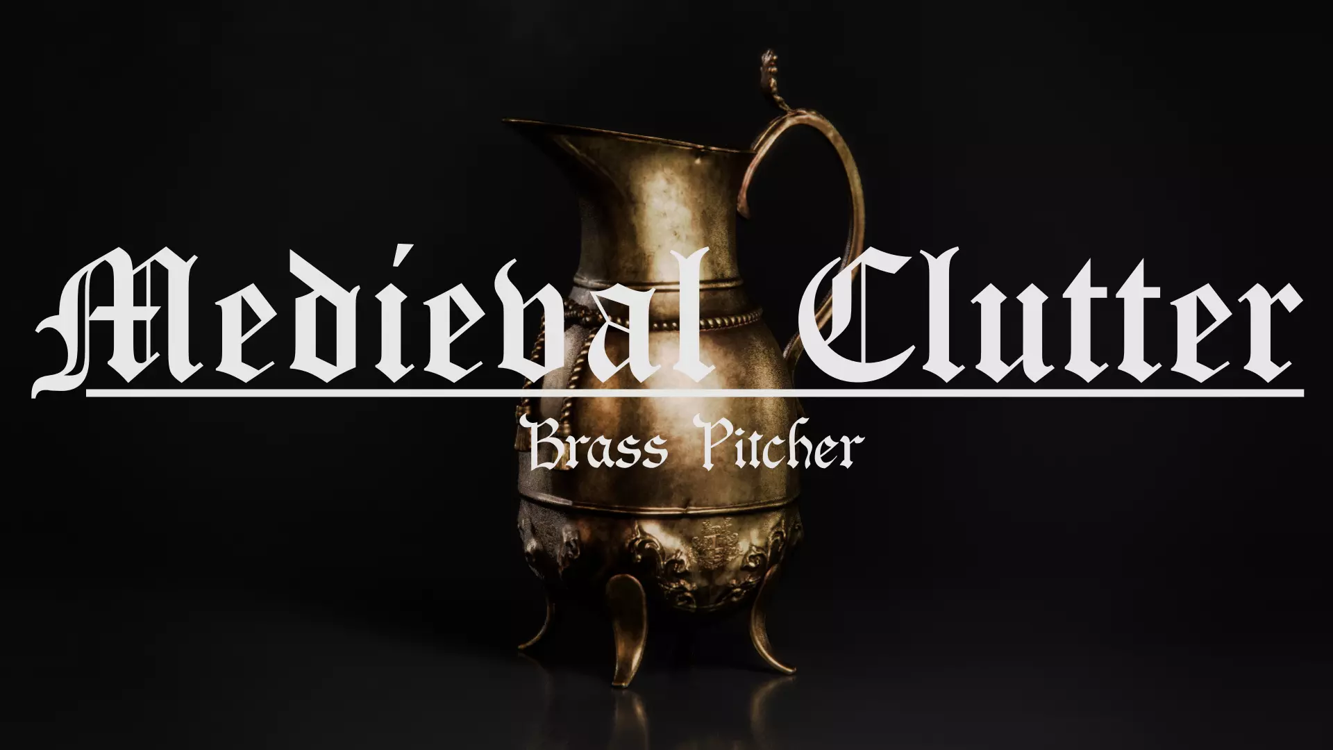 This game-ready brass pitcher is an ornate decorative vessel inspired by pre-industrial metalwork traditions. The body is richly carved, with a sculpted rope binding encircling the neck and floral motifs worked into the four supporting feet beneath. An elaborate handle curves along the back, featuring a leaf-shaped ornament positioned as a counterbalance point for controlled pouring. While suited to medieval and fantasy settings, its craftsmanship also allows it to sit naturally within late 18th–19th century or early Victorian-inspired environments.