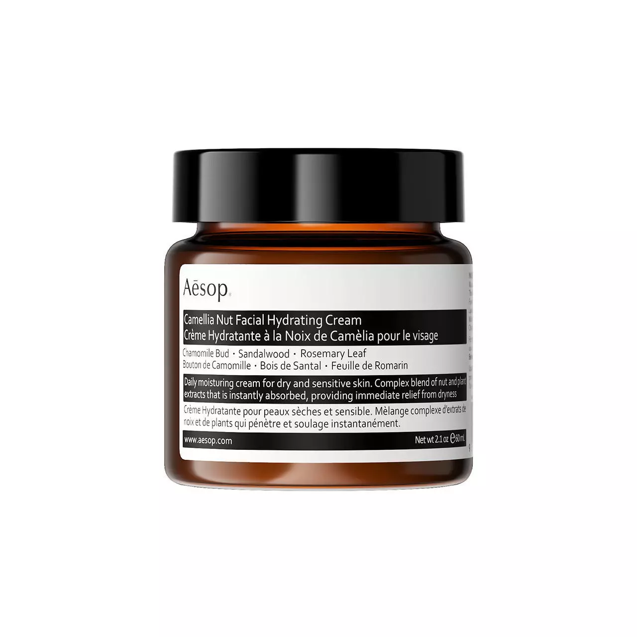 3d model Camellia Nut Facial Hydrating Cream 60ml manufactured by Aesop. A nourishing daily moisturising cream for dry or sensitive skin. The complex blend of nut and plant extracts in this extensively researched formulation absorbs swiftly, providing anti-oxidant fortification and richly nourishing hydration without a weighty after-feel. Dimension of the cream: 60ml. The vray and corona file comes with materials in place ready to render it.