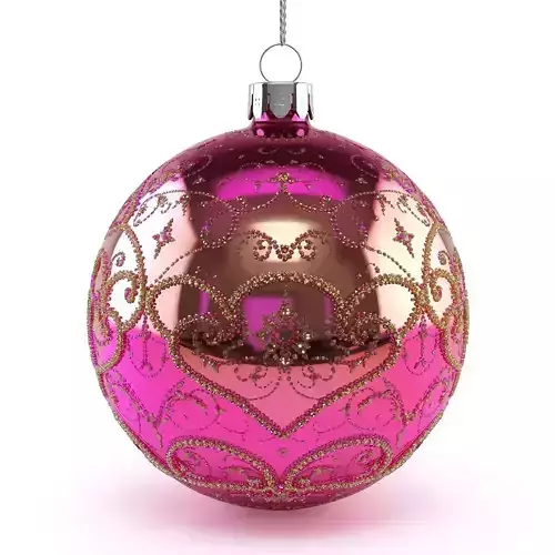 TagsOrnament Christmas Holiday Bauble Ball Pink Magenta Gold Glitter Festive Decor Seasonal Prop GameAsset Luxurious Reflective Filigree Collectible Interior TreeDecor