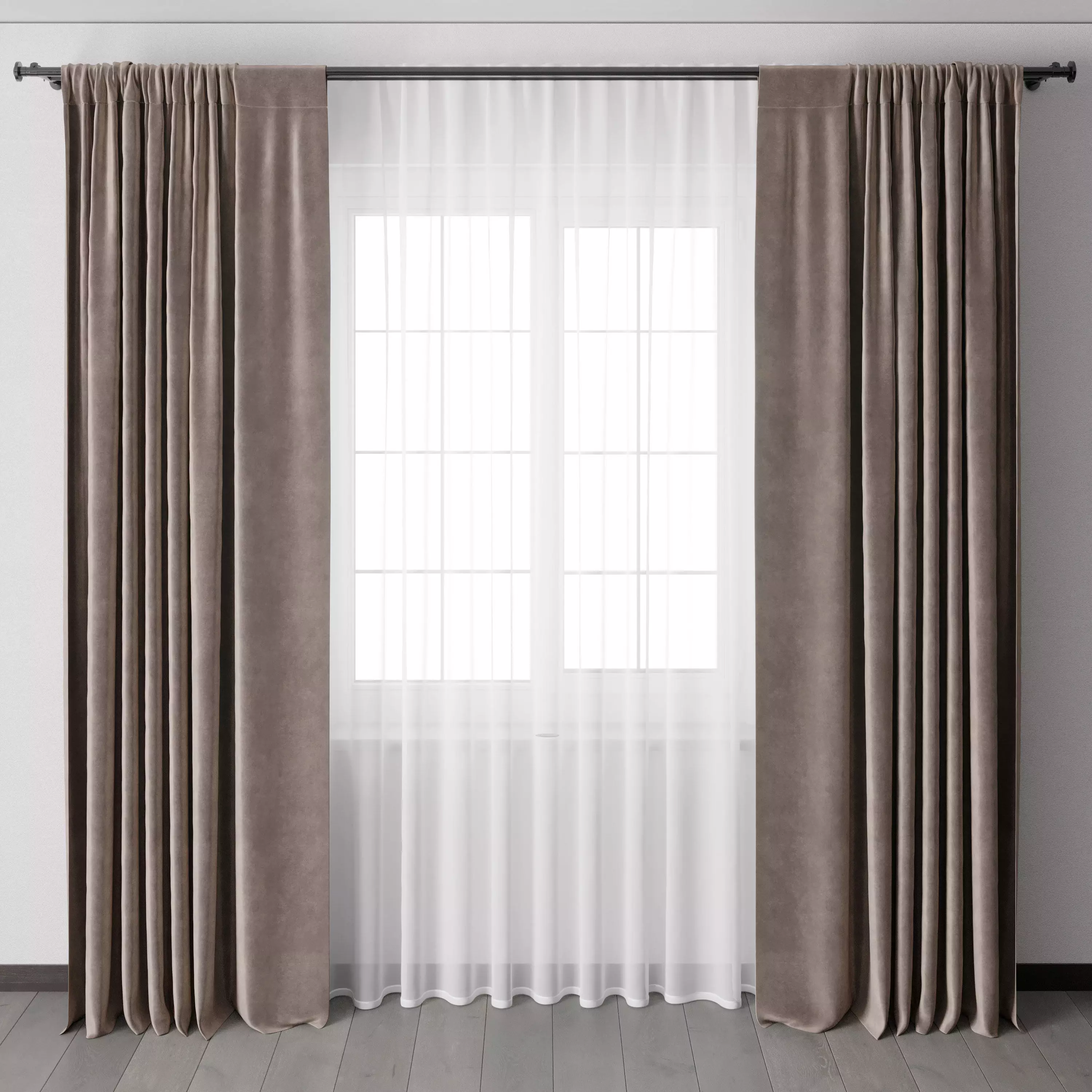 Curtain with metal curtain rod metal blind 12 Low-poly 3D model
