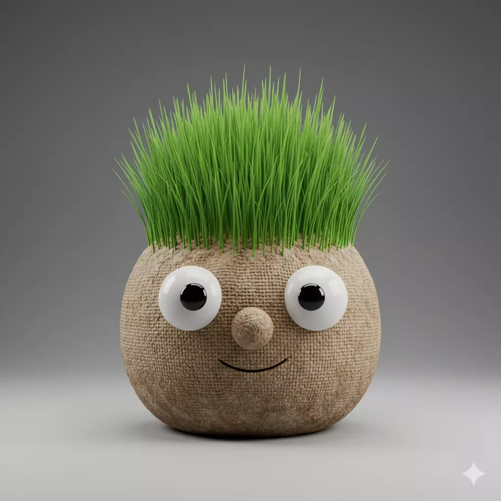 Whimsical Grass Head Doll - A Touch of Green for Your Scenes Bring a sense of fun and nature to your digital environments with this adorable Sprout Head Doll. Featuring a friendly, expressive face and vibrant green grass hair, this asset is perfect for cozy interior renders, kids' room decorations, or educational game props. Its unique eco-toy aesthetic adds a warm, playful vibe to any project.