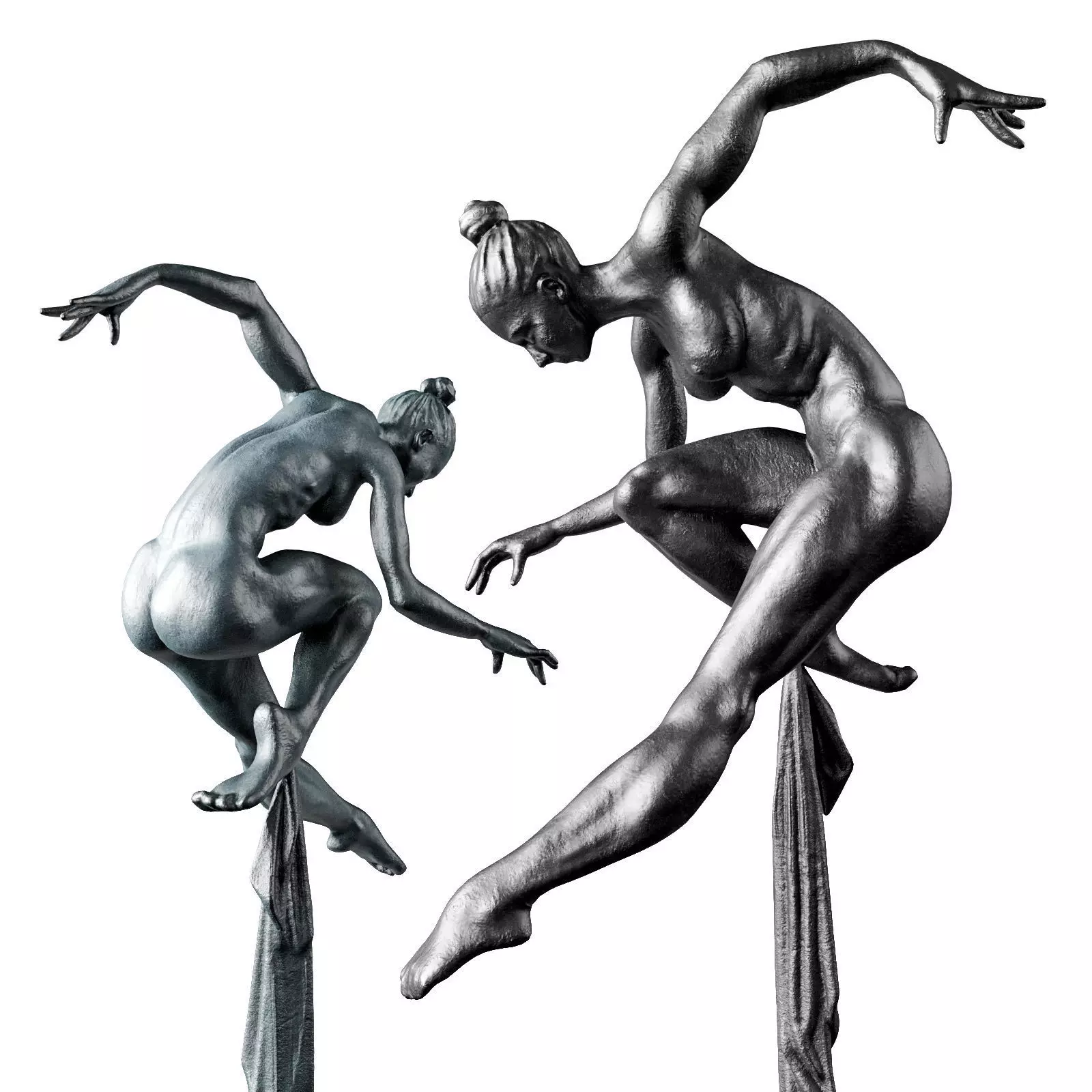 Dancer with fabric sculpture Low-poly 3D model