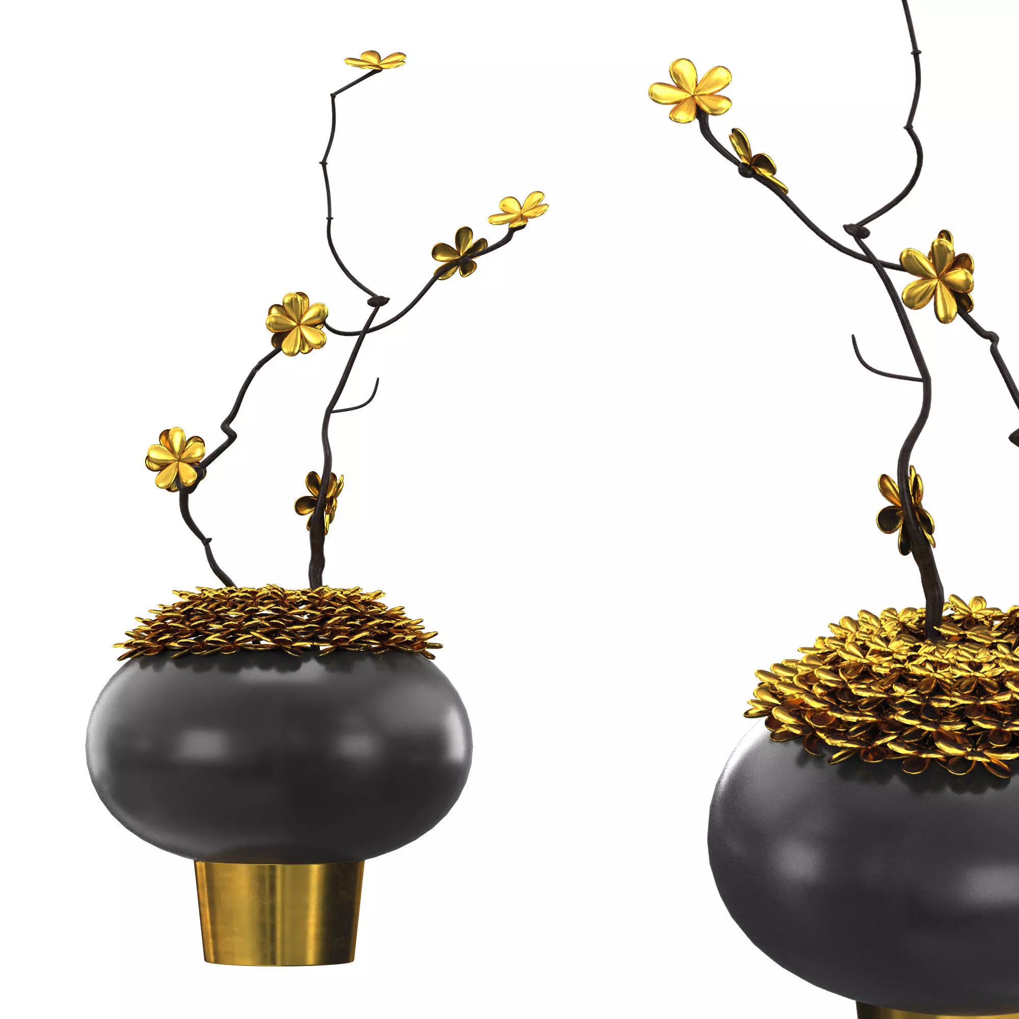 decorative vase brass flower 3D model