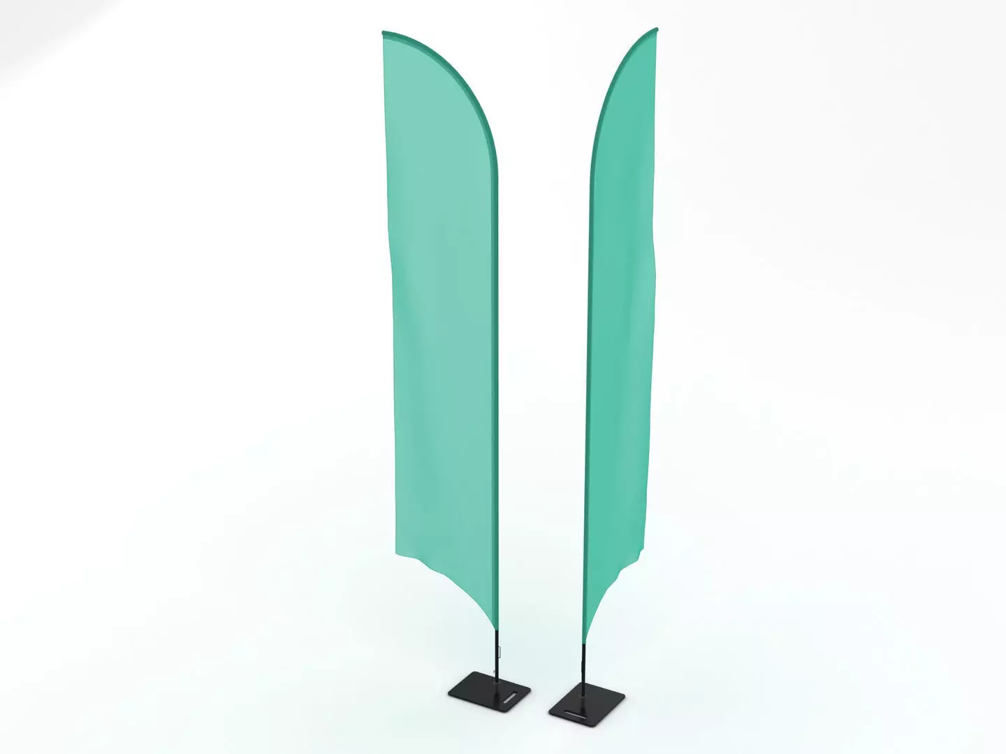 A DETAILED 3D MODEL OF TWO FEATHER FLAG BANNERS: