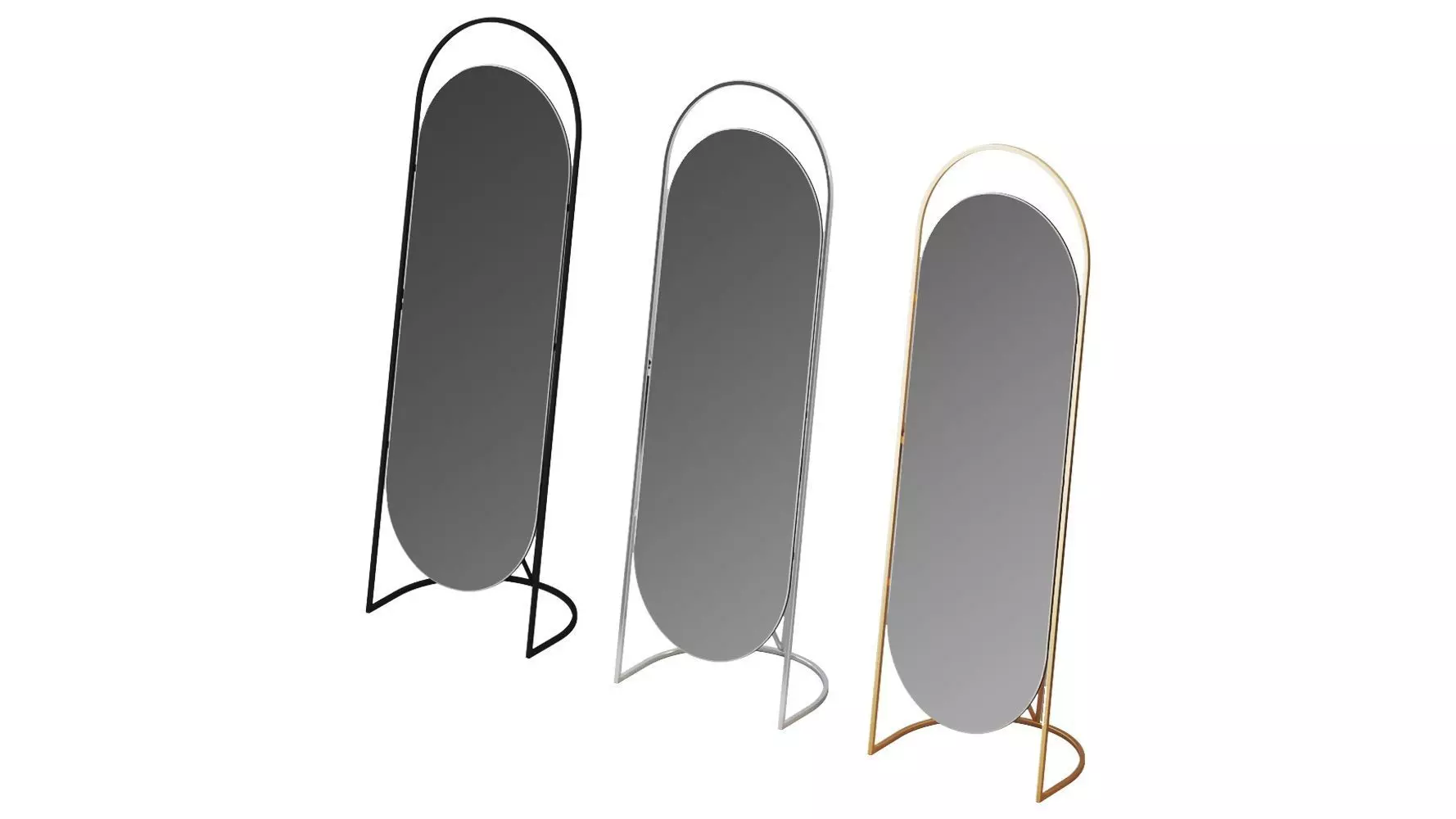 The elliptical floor mirror adorns bedrooms, hallways or walk-in closets thanks to its sleek antique brass frame - no tilt or mounting fixtures required.Antique brass coated metal frame.The mirror is at a fixed angle; cannot be tilted.Dimensions 198 cm x 66 cm