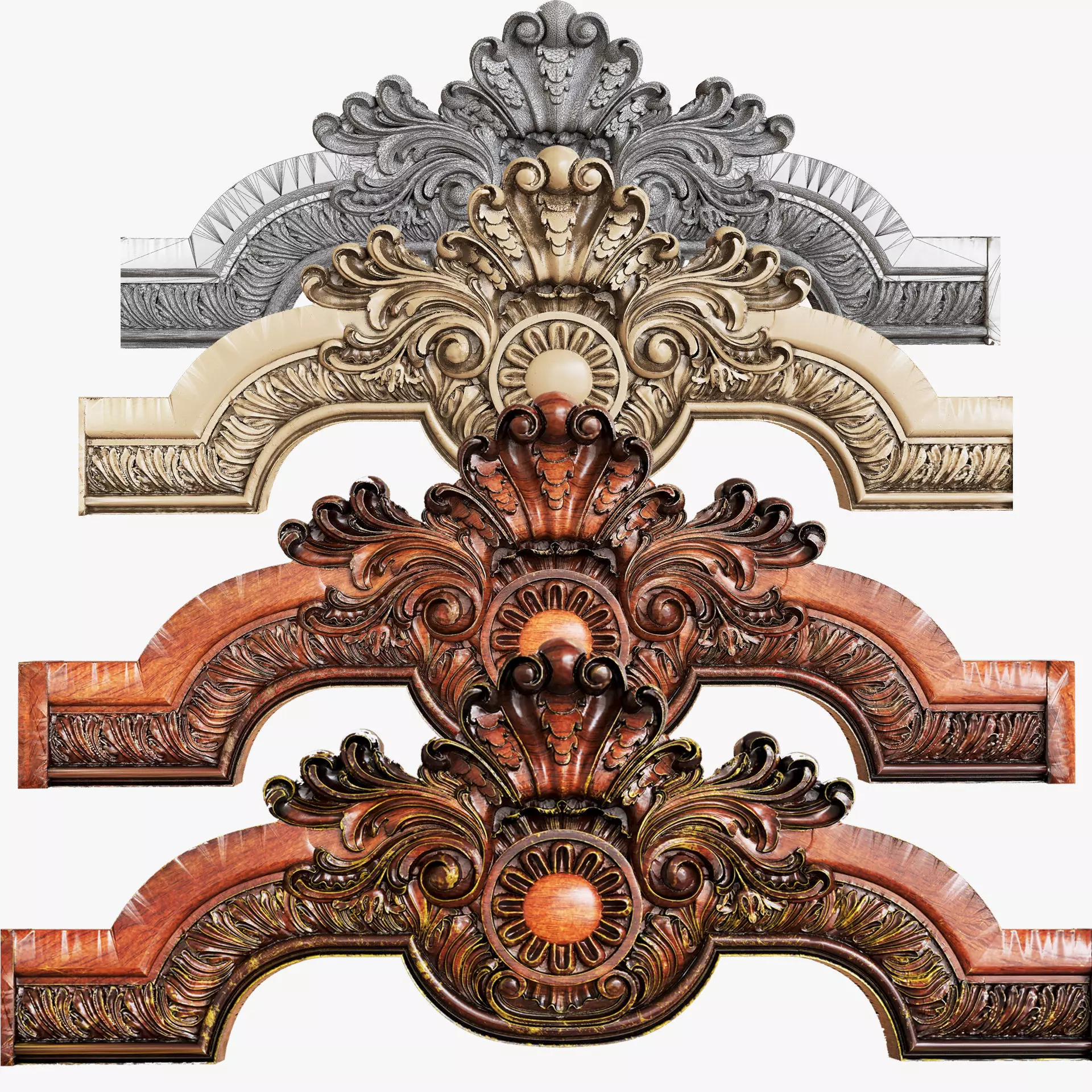 A premium classic bed fronton ornament, sculpted with high artistic detail and inspired by traditional French and Italian furniture design.Perfect for 3D printing, CNC manufacturing, interior visualization, furniture design, and digital rendering.