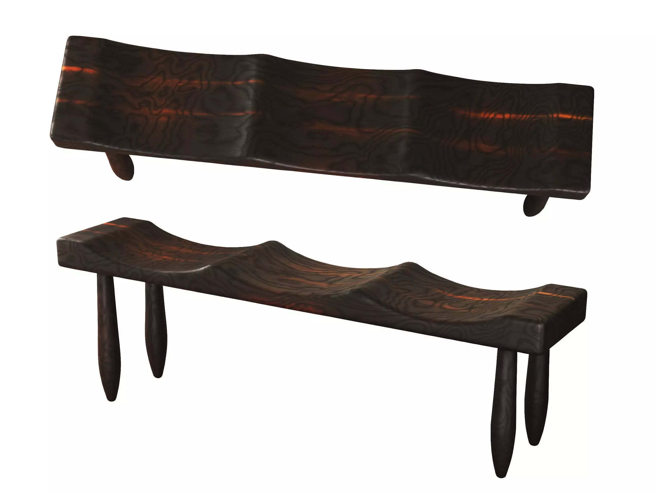 Handcrafted Wave Seat Wooden Bench 3D model