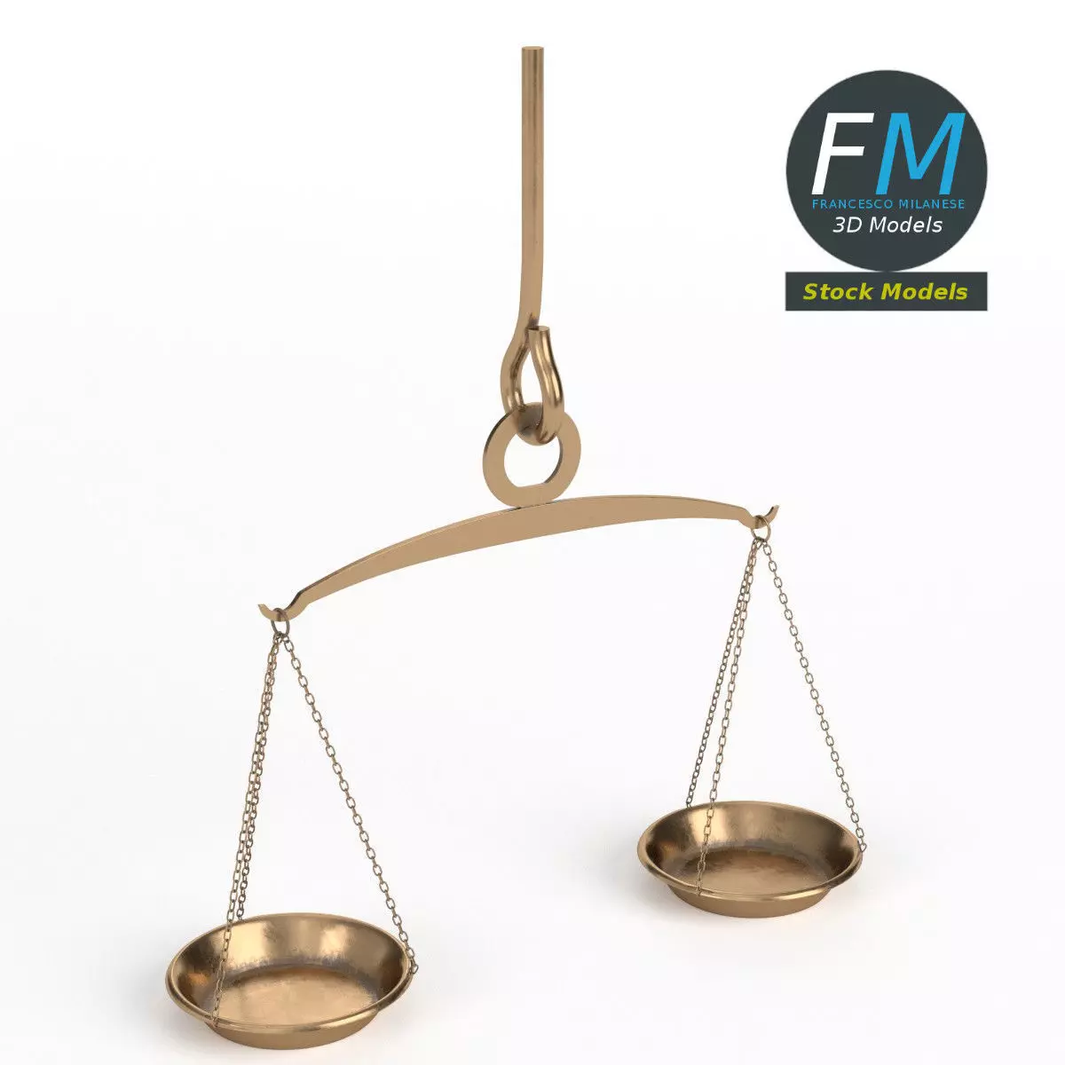 Handheld balance scale 3D Model. 4 individual objects (hook, lever, plate 1, plate 2) sharing the same non overlapping UV Layout map, Material and PBR Textures set. Production-ready 3D Model, with PBR materials, textures, non overlapping UV Layout map provided in the package.Quads only geometries (no tris/ngons), no poles.Easily customizable: UV unwrapped geometries, so you can create new Textures (or modify the existing ones) using the UV Layout maps provided in the package (as png with alpha).Each Object, Material or Texture provided in the package has a unique, meaningful name.Made in Blender 3D 2.80 (Cycles / Eevee materials) then exported to OBJ and FBX; materials and textures made in Substance Painter, exported for PBR, V-Ray, Unity, Unreal.PROMO IMAGES: the first image has been rendered in Cycles (or Eevee) for Blender 3D 2.8x; in particular, you can find 11+ promo images in this description: