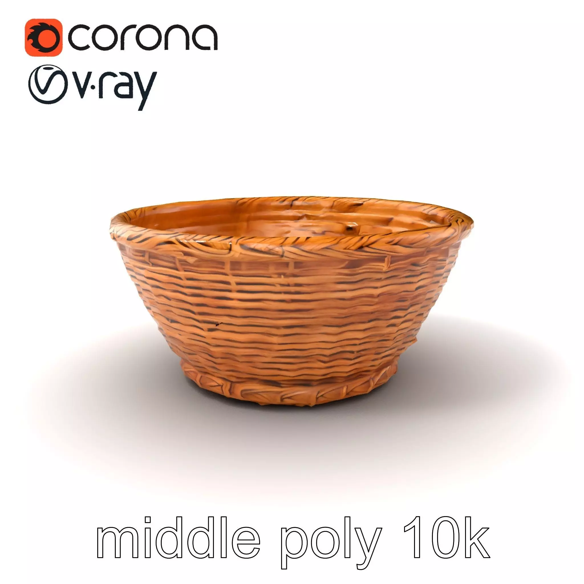 This handwoven wicker basket model is perfect for rural market setups, enhancing scenes with its natural hue and organic imperfections. Suitable for decorating kitchens, stores, or authentic village scenes in animations and illustrations.