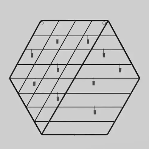 The Hexagon Metal Photo Grid Blender 3D model is a modern, minimalist wall décor accessory ideal for home office, bedroom, or dormitory visualizations. Featuring geometric wireframe construction, this functional accent piece serves as a stylish display grid for photos, notes, or decorative clips in interior design scenes.