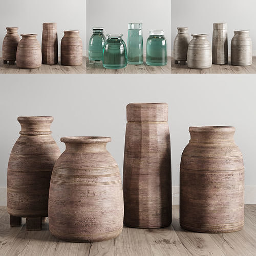 Indian wood vessel collection Grand vase Low-poly 3D model