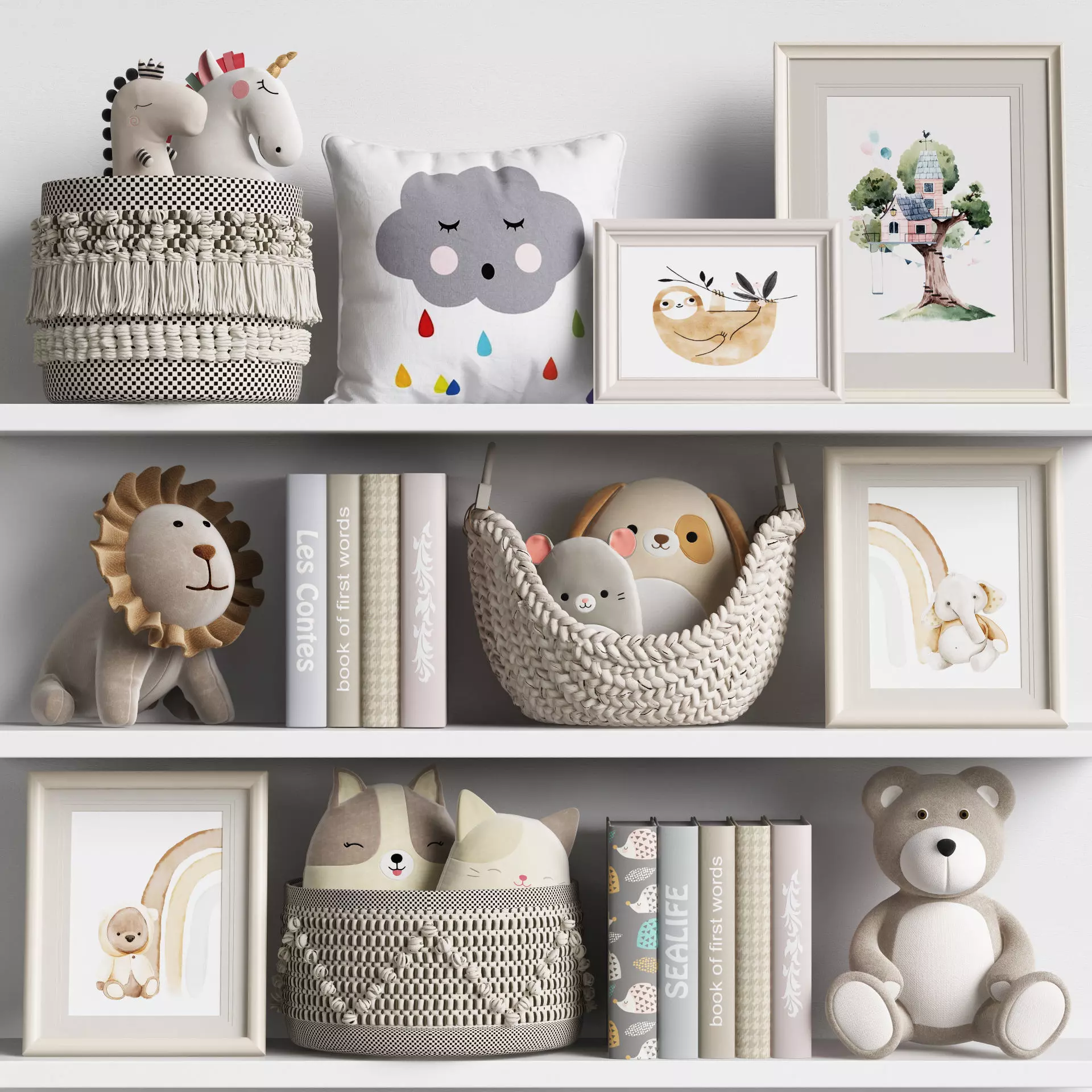 -unicorn-dragon-lion-teddy bear-wicker baskets-books-posters
